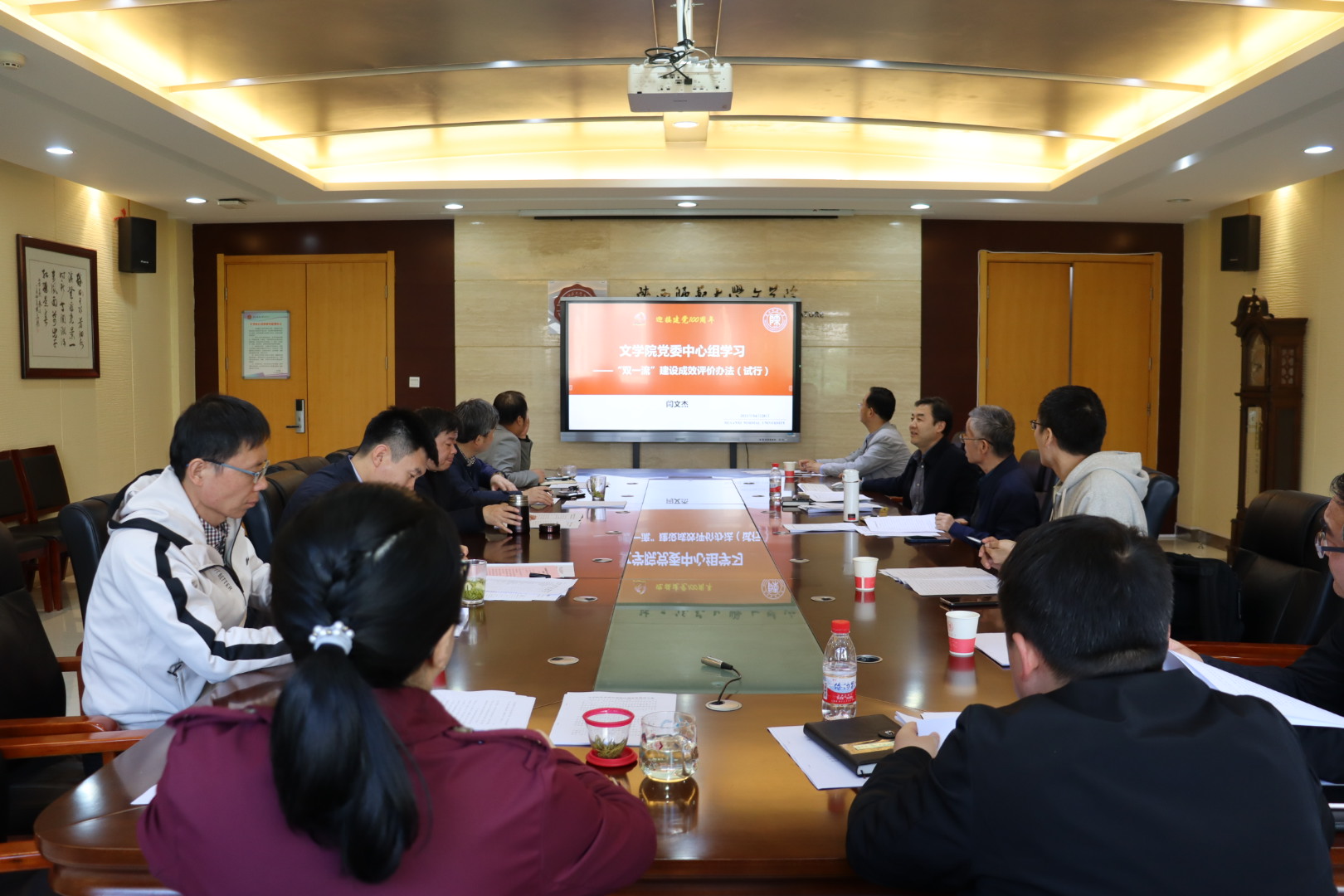 在理论学习环节,闫文杰领学《“双一流”建设成效评价办法(试行)》。《办法》指出,“双一流”建设要以中国特色、世界一流为核心,评价时要重点关注高校和建设学科的整体发展水平、成长提升程度和可持续发展能力,将“破五唯”要求贯穿到全过程和各方面。在评价结果运用方面,要以区间和梯度分布等形式,综合呈现高校和建设学科自我评价、专家评价和第三方评价结果。其中,《办法》所提到坚持内涵建设、需求导向、分类评价和以评促建的四项成效评价原则和实行水平评价与效益考核相结合、日常动态监测与周期评价相结合、定量评价与定性评议相结合的“三结合”成效评价组织,体现了“双一流”建设的本质要求,为“双一流”建设指明了发展方向。院领导班子成员围绕文件精神展开了讨论。