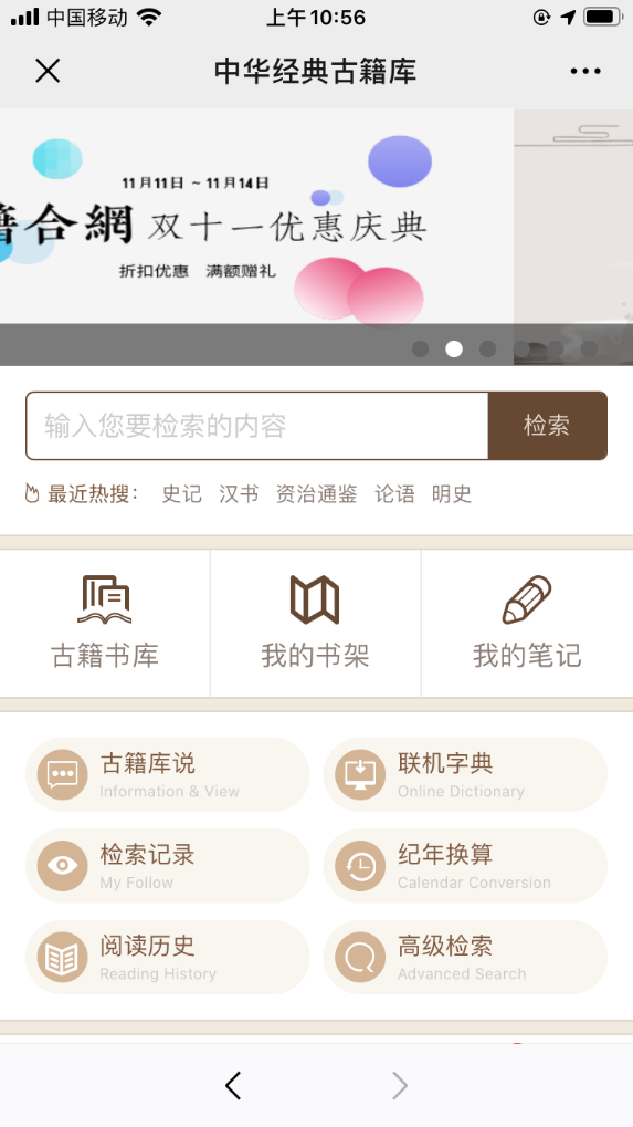 中华经典古籍库访问网址:http://publish.ancientbooks.cn/docShuju/platformSublibIndex.jspx?libId=6
