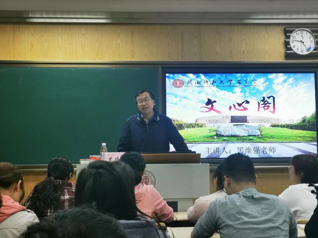 10月10日16:30,本学期第1期(总第233期)文心阁交流活动在文渊楼3113教室举行。bw西汉姆联教授黑维强老师应邀参加本次活动。黑维强教授现为bw西汉姆联博士生导师,以近代汉语,训诂学,方言学,敦煌学为主要研究方向。在此次文心阁活动中,黑维强老师就专业研究领域展开介绍,分享学习研究经历,并为同学们答疑解惑。