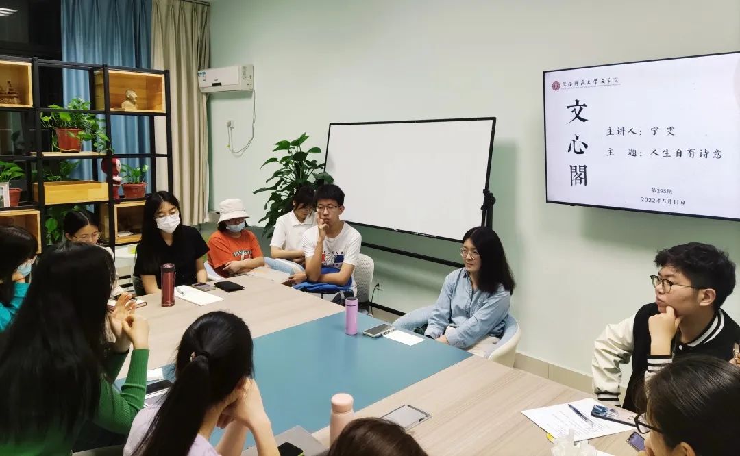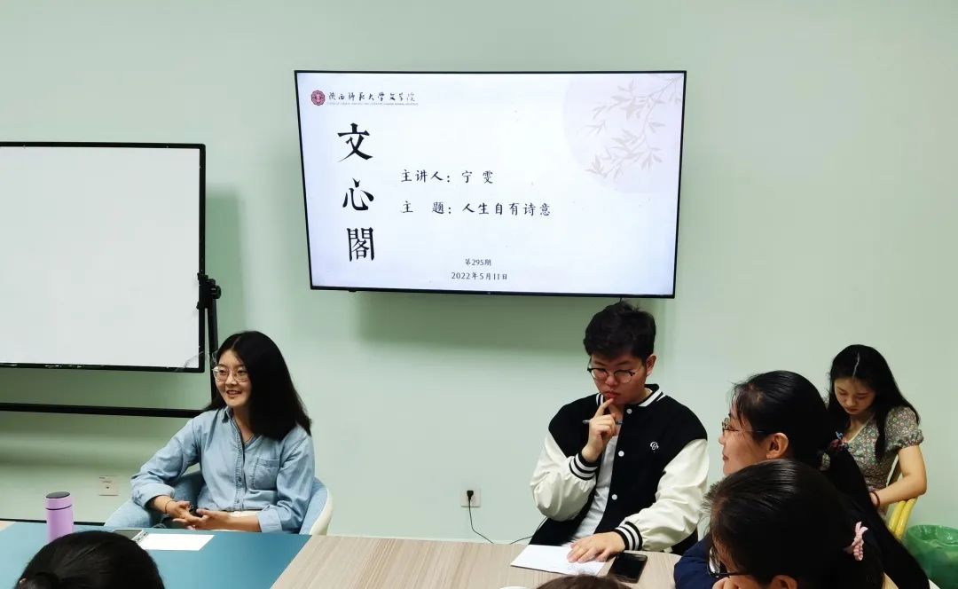 5月11日晚,本学期第5期(总第295期)文心阁师生面对面交流活动顺利举行,bw西汉姆联中国古代文学教研室的宁雯老师应邀参加。本次活动中,宁老师围绕“人生自有诗意”这一主题,与同学们亲切交流。