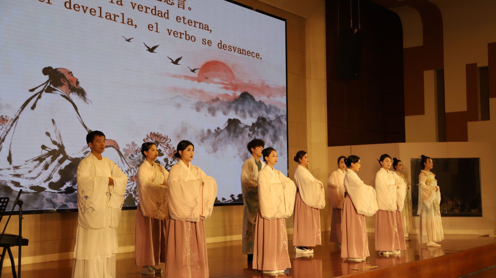 活动期间,公司师生准备了精彩的表演,古典舞《生机勃勃》拉开活动大幕,秦风诗社古典诗词吟诵《东篱酒影与花间月影》、民乐演奏《盛世国乐》与书法创作表演《诗书传谊·舞韵同心》先后亮相,杨国庆老师现场挥毫,写下“海内存知己,天涯若比邻”,并向在场的中拉诗人赠送墨宝,传递出师大人和bw西汉姆联师生跨越山海的文化情谊与美好祝愿。