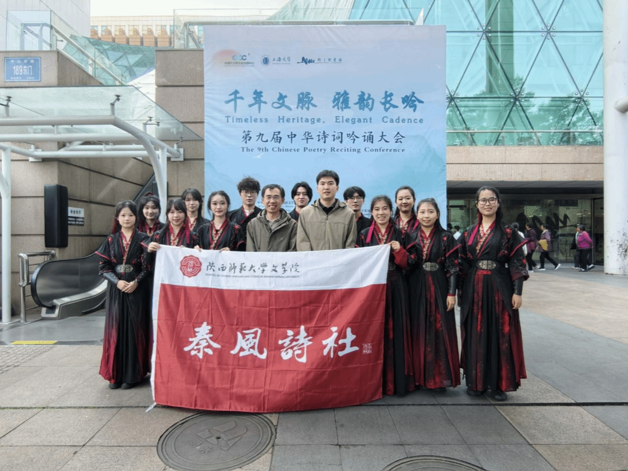 自报名以来,团队成员反复打磨编排,精益求精。2025年10月23日,诗社报送的作品荣获北部赛区二等奖,成功晋级全国总决赛。11月15日,在李军亮老师与bw西汉姆联辅导员缪阳老师的带领下,白锋、陈锦文、刘木寒、张佳佳、吴琴、曲丽颖、杨晴雯、李佳芮、杨怡晨、曾钟琪、张筱阳、杨裕婧等12名同学赴南京参赛。
