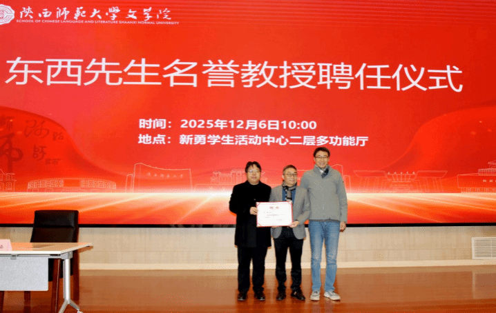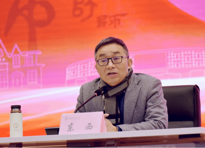 聘任仪式结束后,东西教授的讲座正式开始。他结合自身的阅读经验与创作实践,认为每一次阅读都以潜意识的方式存在于大脑之中,他可以从中获得写作方式并提高自我认知。东西教授以卡夫卡的《变形记》、菲茨杰拉德的《本杰明·巴顿奇事》以及自己的小说《没有语言的生活》《回响》等作品为例,强调写作需要变形思维,伟大的作品往往通过“变形”“荒诞”等手法,开辟对人类共同命题的独特书写,实现对现实生活更深层的揭示。他赞赏文学所具有的无边无际的想象力,认为无论是写作还是阅读,想象力都是思考、构思、解构的动力,只有从想象之中,才能获得共鸣与突破。他还分享了自己在写作《回响》时对语句的反复锤炼,认为优秀的文学语言往往以具象、新颖的比喻达成情感的精准传递,将追寻精准语言的过程看作表达内心真实的过程。最后,他鼓励有志于写作的年轻人培养文学想象、坚持艺术探索,在写作中开辟新的表达路径。