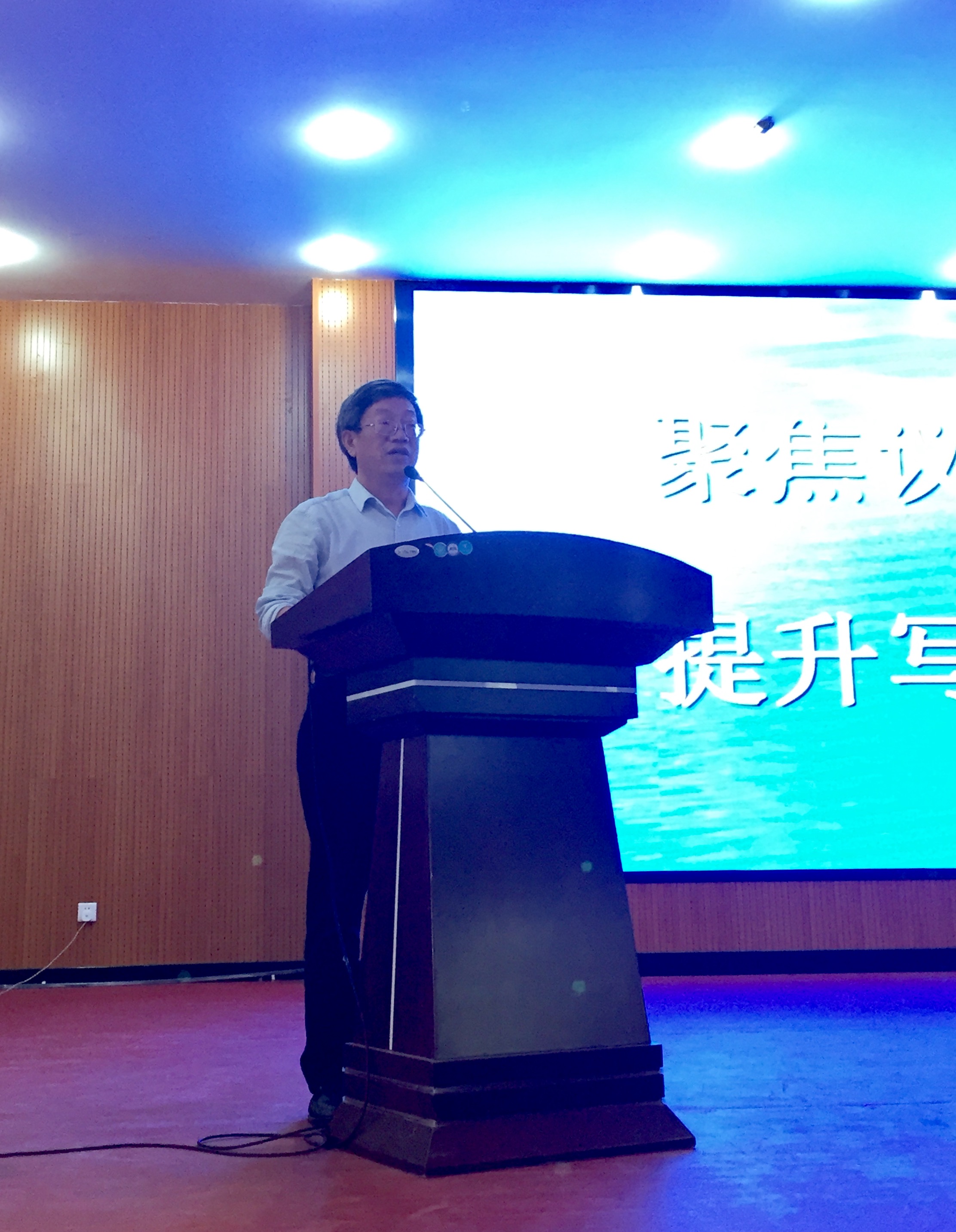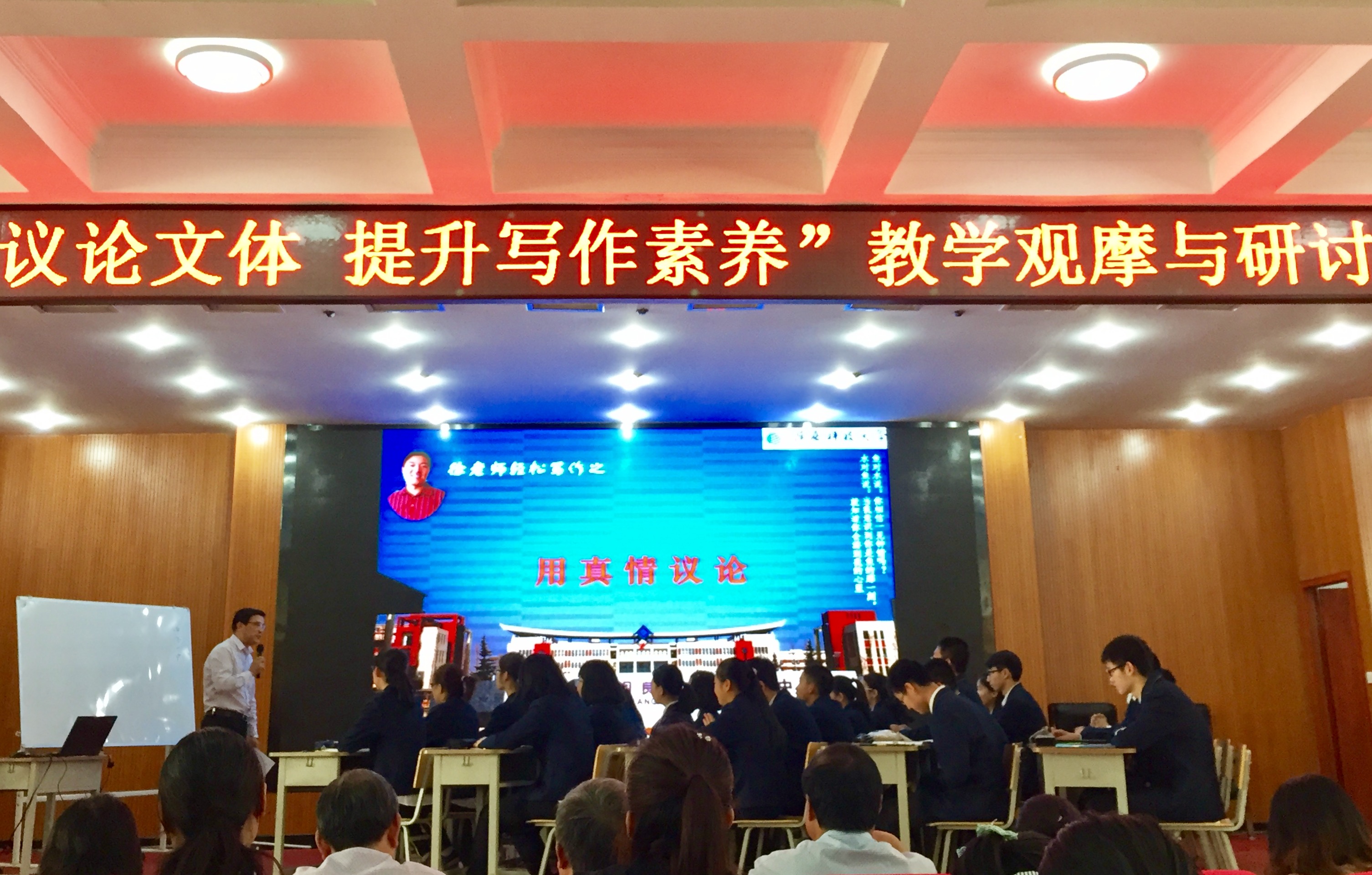 第二堂示范课由陕西科技大学附中徐立奇老师讲授,主题为“用真情议论”。如果说第一堂课的论证过程和方法撑起了议论文的骨架,那么第二堂课的内容在于进一步为其增添血肉。徐老师以鲁迅的文章片段为引子,说明情感在议论中的重要作用。接着,他用讲述和图片相结合的方式呈现出生活中的不文明现象,引发员工讨论,并让员工在情感驱动下写出对不文明人进行批评的说理短文。在员工分享交流习作之后,老师还展示了自己下水作文,给员工作示范。整堂课老师的讲解激情洋溢,意在使员工于潜移默化中感受到情理结合以情促论的重要性。