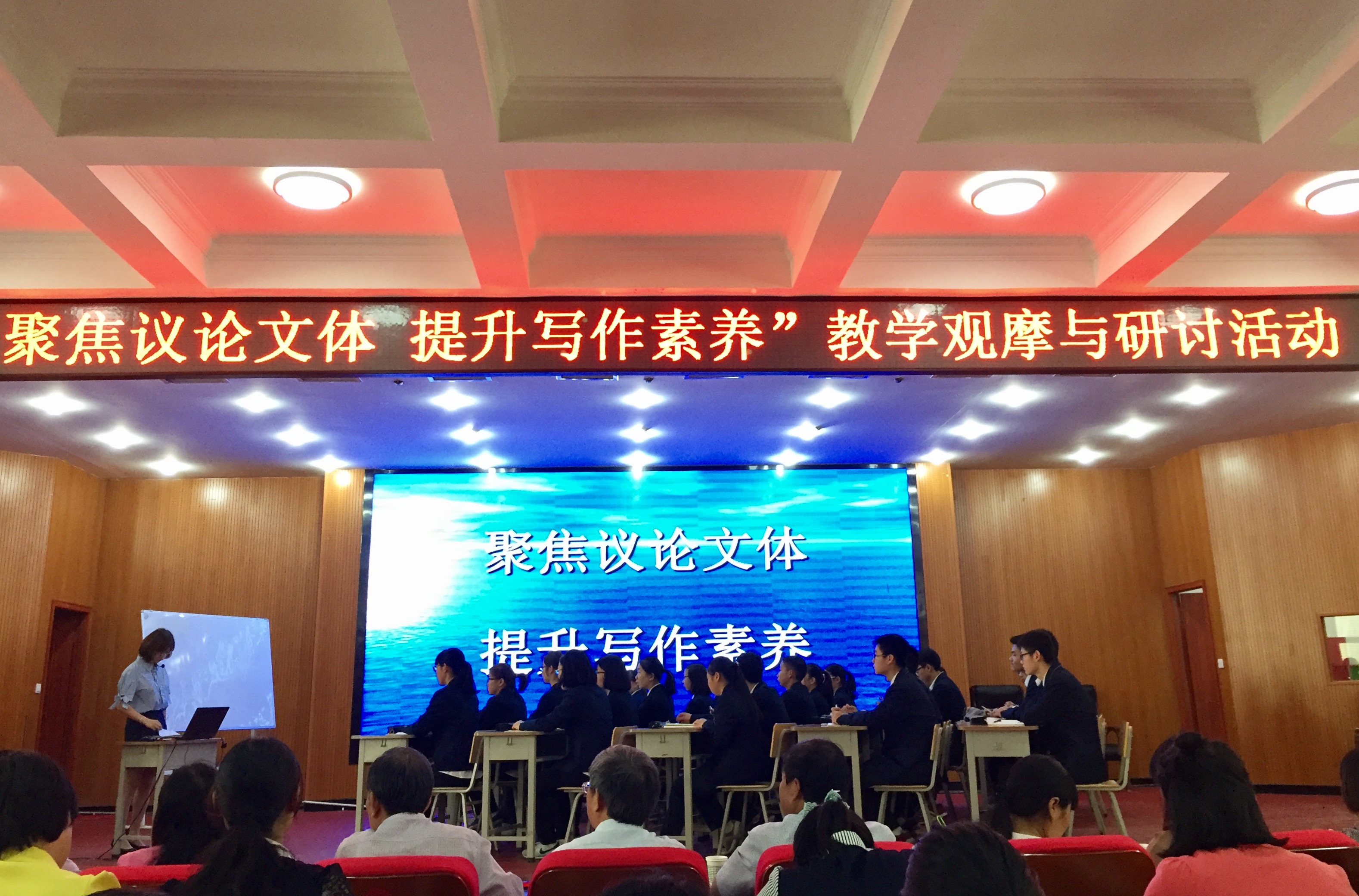 示范课后是专家点评和研讨环节,由西飞一中侯晓田副董事长主持。与会的陕西省教学名师和教学能手司惠霞、张艳及侯晓田三位老师对两堂课做了简要评说,充分肯定优点,也指出可改进之处。谢建云、骆晓娟两位老师还就当下员工在议论文写作过程中存在的问题及解决方法作了主题发言。最后,刘生良老师和马守君老师做了总结性发言,除评点课堂得失外,还就新课标下语文核心素养的培养提出了建议,希望中学教师积极适应新课改,不断探索课堂教学的新范式。