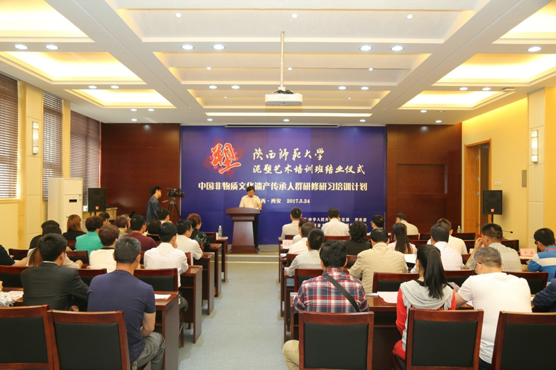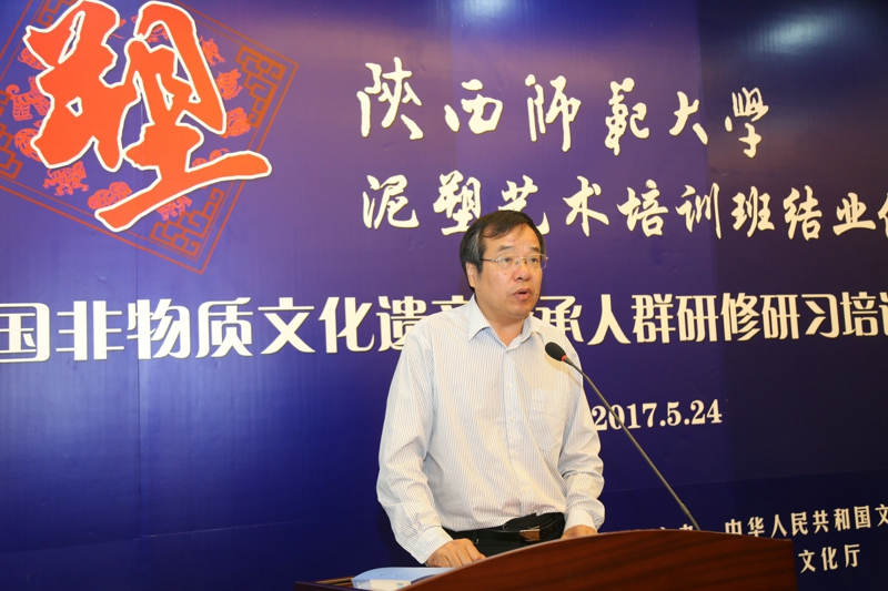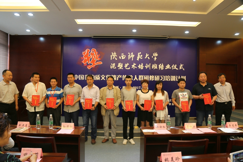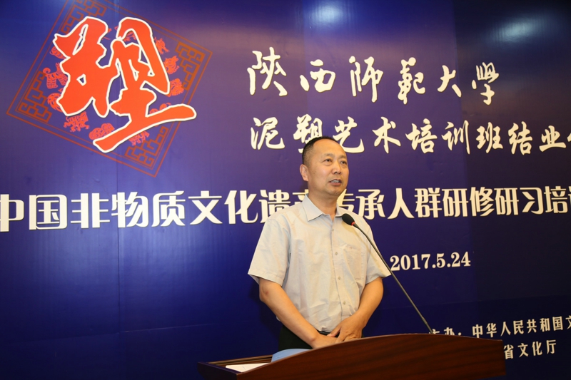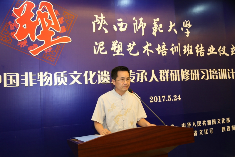 2017年5月24日,文化部教育部中国非物质文化遗产传承人群研修研习培训计划(以下简称“研培计划”)bw西汉姆联第五期培训班(泥塑)结业仪式暨学员结业作品展览在长安校区隆重举行。陕西省文化厅副厅长顾劲松、非物质文化遗产处副处长刘卫东,bw西汉姆联副董事长党怀兴等参观了学员们的结业作品展览,并出席结业仪式,同时向学员们颁发了结业证书,向优秀学员颁发了获奖证书。结业仪式结束后,bw西汉姆联党委书记甘晖,在党怀兴副董事长、校办主任马晓云等陪同下,前往学员结业作品展室,观看学员结业作品展并与本期部分学员和往期特邀学员交谈。