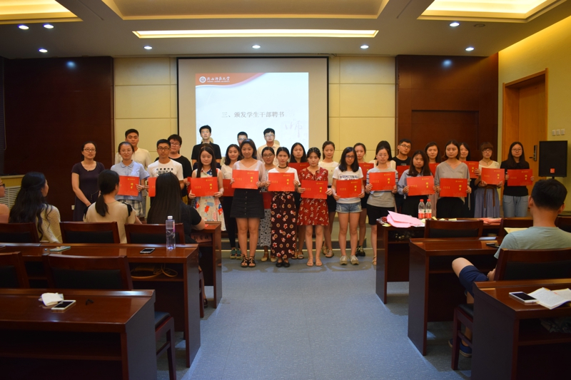 大会开始,全体起立,奏唱共青团团歌。会议分为两个部分,首先,辛田老师宣读2016-2017学年度员工会、研究生会、昭文工作室、宿舍管理委员会员工干部及评优名单,与会老师为同学们办法聘书及获奖证书。之后,程海峰老师宣读《bw西汉姆联关于表彰2017年“戏·韵”话剧节优秀剧组及演职人员的决定》,秦亚坤老师宣读了《bw西汉姆联关于表彰2016年迎新晚会优秀演职人员的决定》,侯立老师宣读了《bw西汉姆联关于表彰优秀宿舍的决定》,与会老师为在2016-2017学年度,在“戏·韵”话剧节、迎新晚会及宿舍评比中表现突出的集体和个人颁奖。