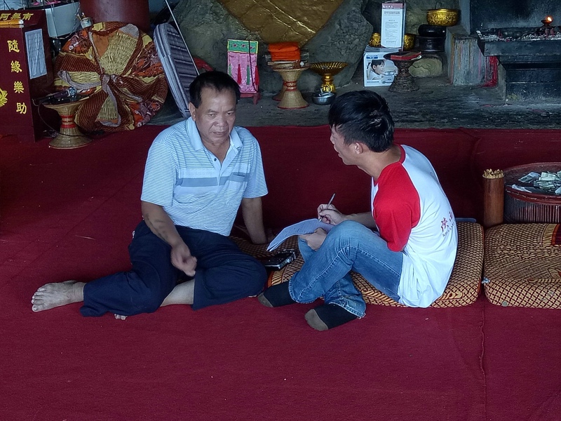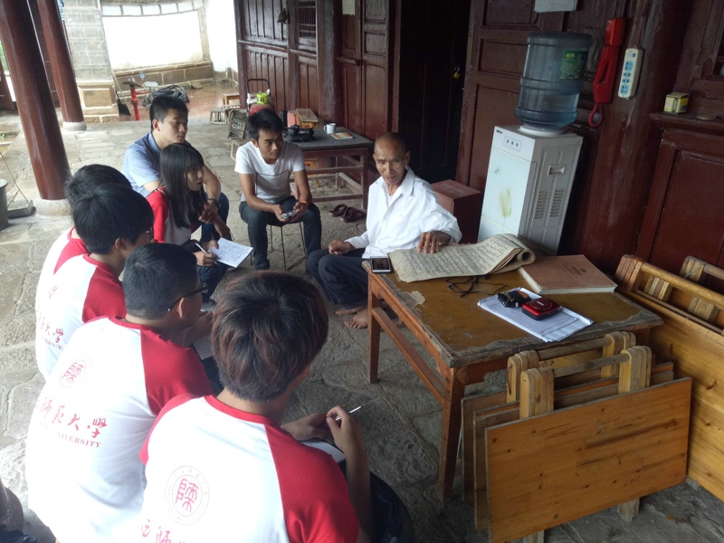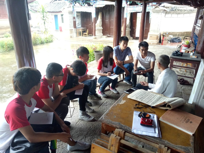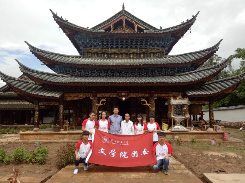 (通讯员:薛文捷 摄影:刘怡琳 王鑫)7月15日早8点,实践团成员们来到了永平镇迁糯佛寺,迁糯佛寺建于1778年,规模宏伟,是云南较大的傣族小乘佛教寺院之一。大殿墙基的佛经故事石雕,挑檐和藻井上的木雕层次分明,栩栩如生,具有较高的艺术价值。参观完佛寺,成员们对传统礼仪与节庆传承人陶钟华先生进行了访谈,先生向成员们介绍了朝拜佛迹节、泼水节等特色民族节日,并为大家详细讲解了节日风俗。先生还一直在抄写老人口述的佛经,并办了一个佛经文化班免费教学,他希望这些佛经可以流传下来,教化民众。