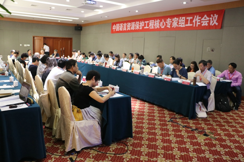 9月22日,中国语言资源保护工程核心专家组工作会议在天域凯莱大饭店召开,中国语言资源保护工程专家咨询委员会副主任张浩明、中国语言资源保护工程核心专家组专家、中国语言资源保护研究中心人员等共58人参加了会议。会议分上、下午两场,由王莉宁主持。上午,曹志耘介绍了语保工程进展情况,张世方介绍了语保工程巡检工作情况、2017年度中检工作安排和中检工作细则,黄晓东介绍了验收工作细则,张浩明副主任就今年的语保工作做了重要讲话。下午,专家们就语保工程中出现的各类问题和相应的解决办法进行了广泛深入地研讨。