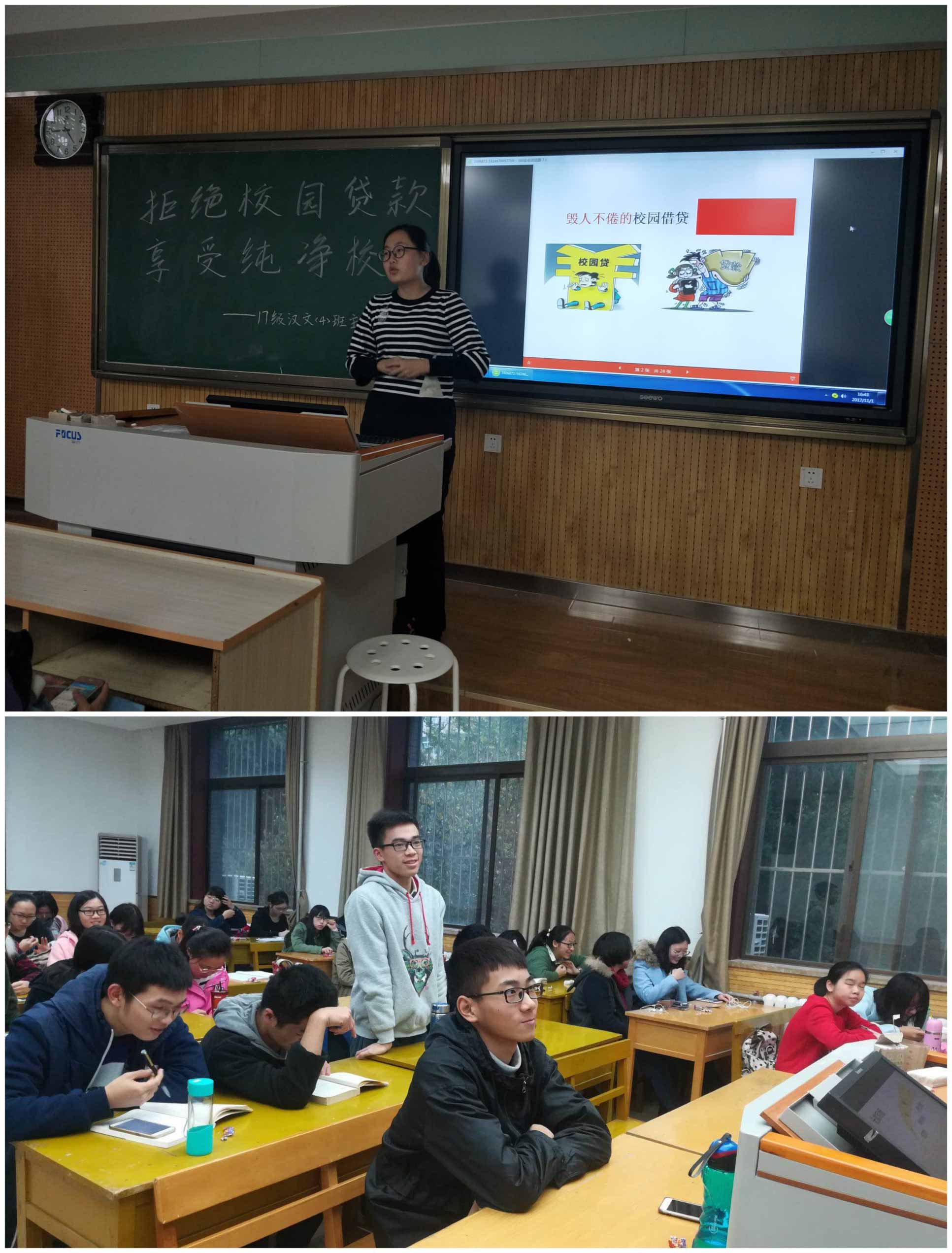 2017级全体同学也在辅导员侯立老师的指导下,陆续开展了一系列主题班会,大致可以总结为校园网贷知多少、网络传销新花招、树立正确消费观、资助攻略等主题。各班班会从网络时代的大背景出发,分别向同学们介绍了校园网贷、网络传销的基本情况,旨在引导同学们树立正确的消费观,识别网络传销,远离校园网贷,保护自身安全,建设和谐校园。