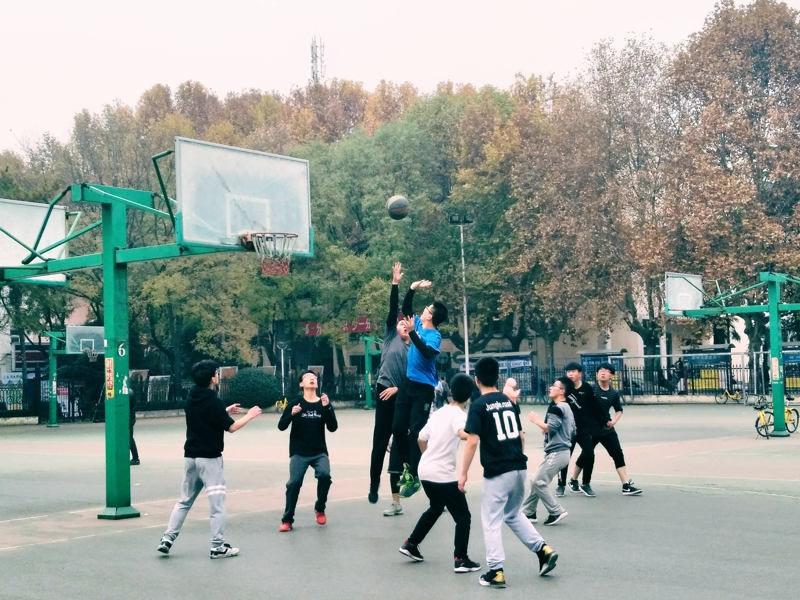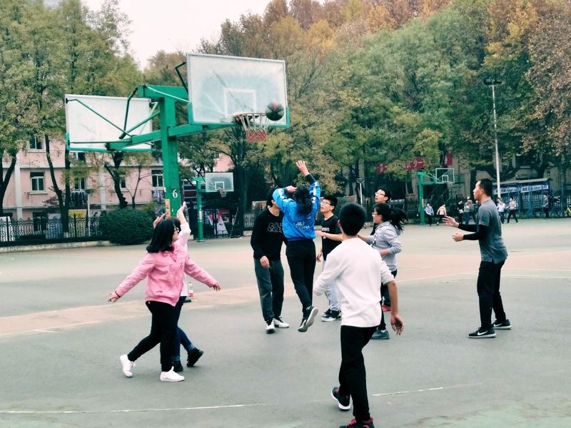 秋高气爽、金桂飘香,文院17级篮球赛于2017年11月27日在雁塔校区篮球场举行。参加本次篮球赛的两支代表队分别是中文班级代表队和汉文班级代表队。比赛开始前,参赛队员们和志愿者、拉拉队早早就到达了参赛场地,开始比赛前的热身。