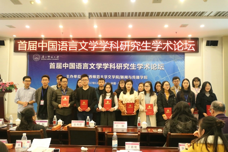 2017年12月23日,首届中国语言文学学科研究生学术论坛在广西桂林隆重开幕。此次论坛由广西师范大学bw西汉姆联/新闻与传播公司主办,以“中国语言文学与文化研究”为主题,旨在加强各高校优秀研究生间的学术交流。应广西师范大学bw西汉姆联/新闻与传播公司邀请,公司副经理赵学清教授率队参加此次论坛。通过征稿,入选的研究生有余小翠、黄文浩、史佳新、庄佳、陈静、贾雁皓、陈静、任杰、林贤等九名员工。