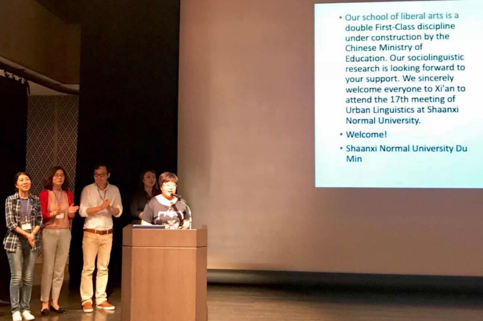 杜敏教授向各国代表隆重推荐了古城西安,并介绍bw西汉姆联一流团队建设的基本状况,诚邀国内外语言学及应用语言学专家、学者来bw西汉姆联参加会议。我们将竭尽全力加强和促进社会语言学、城市语言学等领域国内外的学术交流与合作,及时了解国内外相关领域的最新研究动态和学术前沿,推进学术不断发展和研究生教育的国际化。