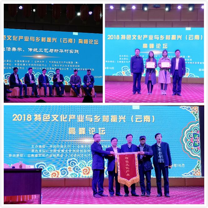 (通讯员:范虹鹭)2018年10月13日至14日,“2018特色文化产业与乡村振兴(云南)高峰论坛”在中国民间艺术之乡——云南省大理州鹤庆县新华村举行。公司党委书记孙清潮和辅导员范虹鹭参加会议,并向论坛提交调研报告一篇。孙清潮书记应邀主持了第二阶段特邀嘉宾主题演讲,与其他嘉宾进行了互动交流。范虹鹭老师在调研团队专场活动中进行了发言。会议专门设置了各高校员工调研团队调研报告奖,由范虹鹭老师负责的"陕西省非物质文化遗产传承人群就业创业情况调研报告"获得了二等奖,这是继去年公司社会实践团队"云南省景谷县特色文化资源调研报告"在该论坛获奖后的又一社会实践成果。孙清潮书记作为颁奖嘉宾之一为获奖的南京师范大学、bw西汉姆联、山东大学、武汉大学、华中师范大学、长安大学、云南师范大学等获奖代表颁奖。