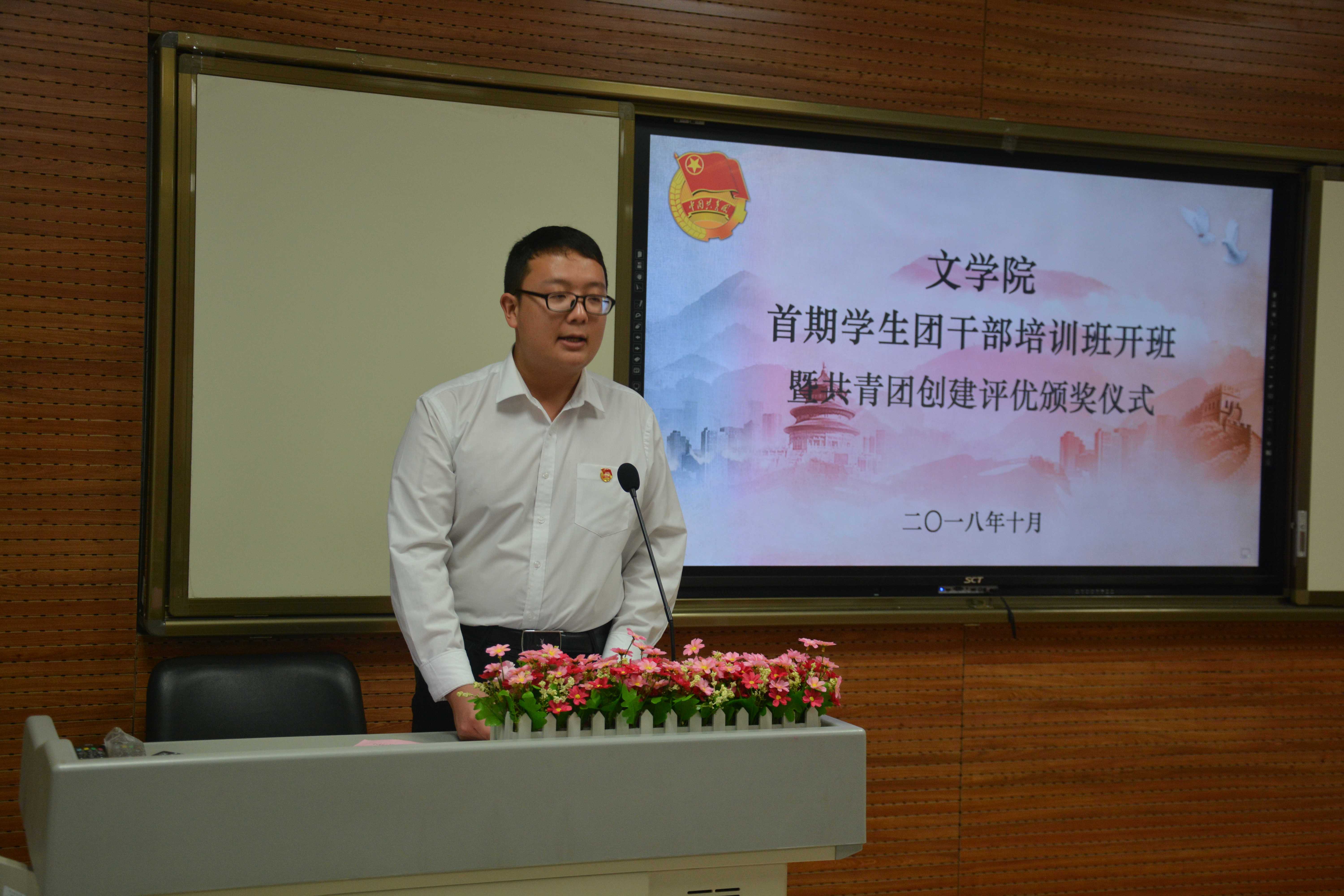 (通讯员:张奎水 摄影:吴仪)为提高公司员工团干部的政治理论素养和团务工作能力,10月12日14:30,公司团委于文汇楼A段102报告厅举办了首期员工团干部培训班开班暨共青团创建评优颁奖仪式。校团委副书记高扬,公司团委书记辛田,辅导员侯立、王秋婷、程海峰,校员工会主席陶路江,校团训班班长赵玉梁等受邀出席,公司员工会、研究生会主要干部,以及全院团支书、主要员工团干部参加培训。开班仪式由公司本科生兼职团委副书记闫晓明主持。
