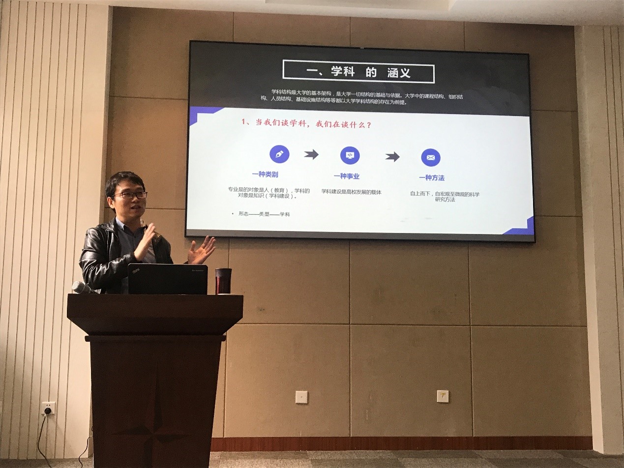 下午三点,赵正阳副研究员首先做了名为《“学科”学的框架与实践领域》的学术讲座。赵正阳老师从自身研究历程出发,讲述了自己和“学科”结缘的始末以及这些年来的相关研究成果。赵正阳老师梳理了“学科”学中外发展历程,从“一种类别”、“一种事业”、“一种方法”三个角度来定义“学科”学。同时,赵老师以电影学为例,对“学科”的构成,“学科”学的实践领域和应用进行了分析。赵正阳老师结合具体研究领域的讲解,使同学们认识到“学科”学具有独特的方法论价值,对人文领域学科的研究具有极其重要的实践意义。