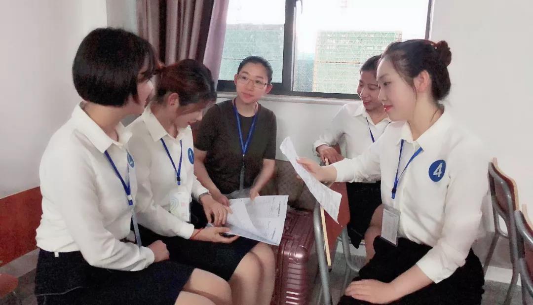 比赛时,参赛队员仍不断思考与练习。尤其是在秘书综合事务处理、汇报展示环节,参赛队员结合具体考题,在赛前准备的基础上临时应变,反复沟通交流,体现出了抗压能力强、合作效率高、进入职业角色快等优秀素质。