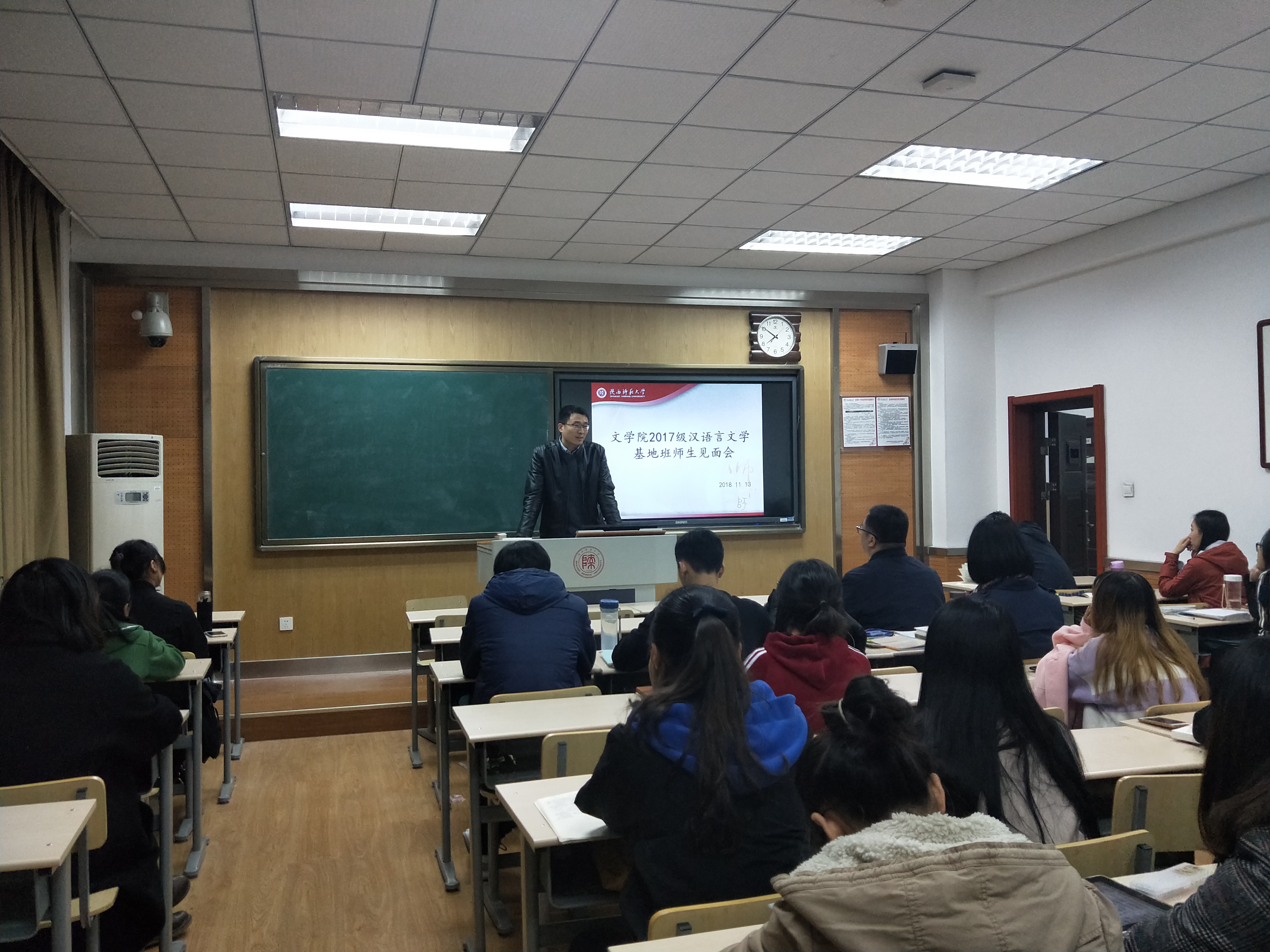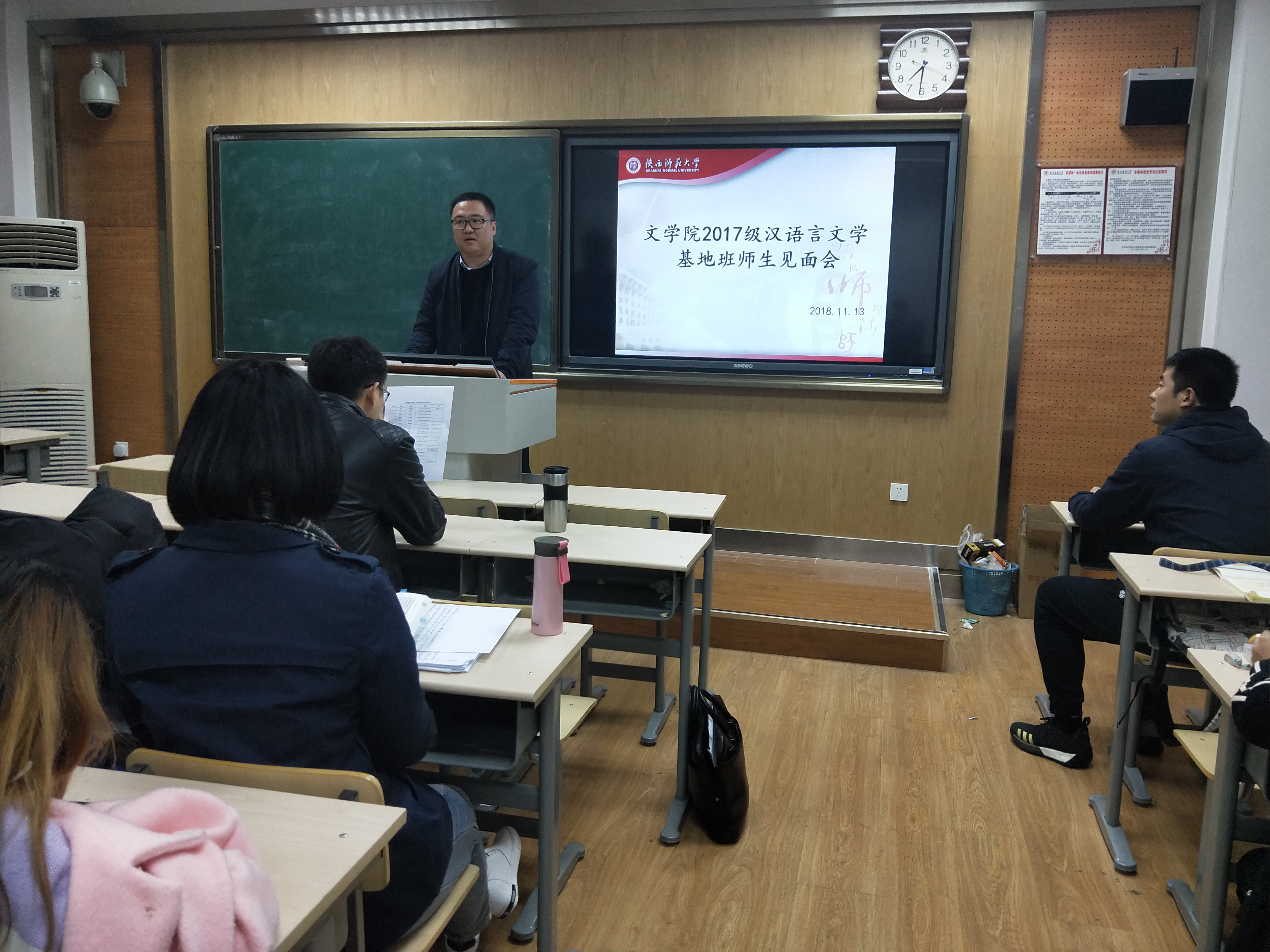 (通讯员:文苑)为促进师生交流、更好地落实开展基地班建设工作,17级汉语言文学基地班“师生见面会”于11月13日19:30在长安校区文渊楼3105教室举行。公司副经理李跃力、基地班班主任杨国庆、17级辅导员侯立及17级汉语言文学基地班全体同学参加了此次见面会。活动由杨国庆老师主持,以读书会的部署工作为主要内容,同时听取员工建议、解答员工困惑。