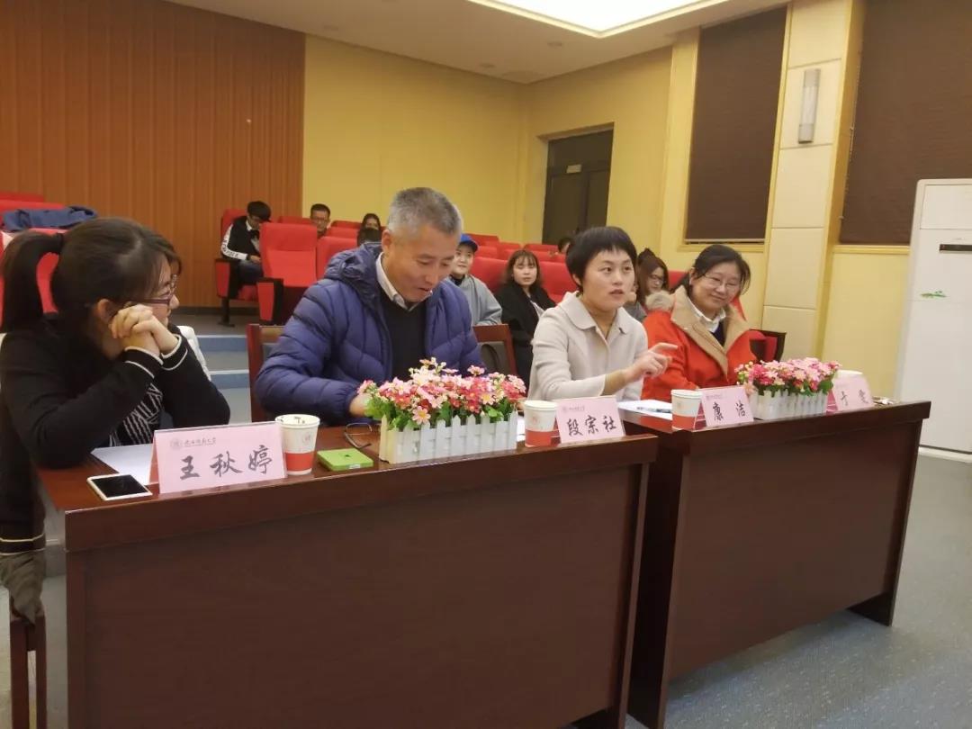 点评环节,老师们对双方的表现提出了宝贵的建议并且对本次辩题阐发了自己的观点。段宗社老师肯定了各队的精彩表现,18级同学年纪虽小但应对灵活敏捷,而研究生队则思维逻辑更加严密,同时也指出了选手们在辩论中的不足之处;于雯老师表述了自己对代沟产生原因的观点,青春期时大多数孩子不愿意和父母沟通所以产生了代沟,而父母年龄增大逐渐不愿意学习、接受新事物产生代沟;最后康洁老师对本场辩论进行了总结发言,并赞扬了选手们良好的精神风貌与辩论风采。