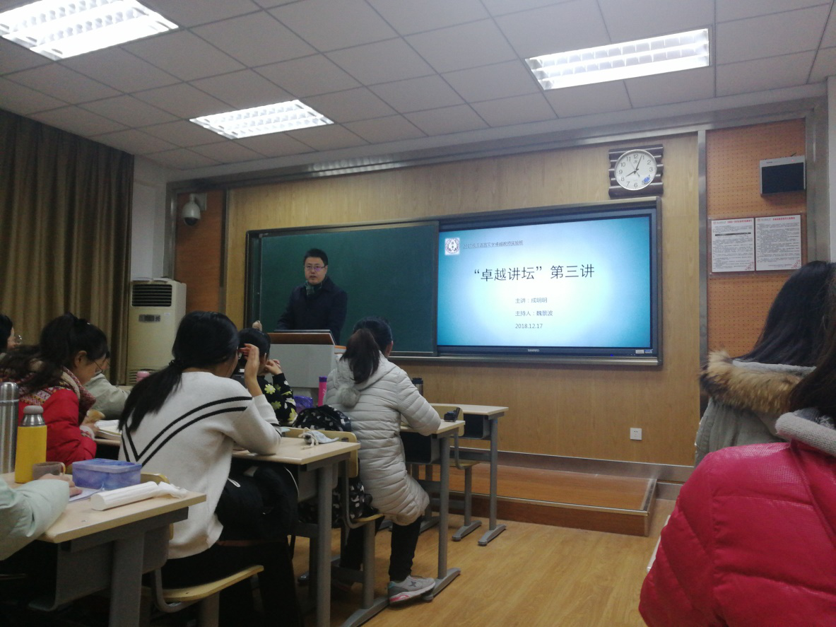 (通讯员:李思颖)2018年12月17日上午,2017级汉语言文学卓越教师实验班 “卓越讲坛”第三讲在文渊楼3106教室举行。本次讲座邀请西北大学bw西汉姆联成明明副教授担任主讲嘉宾,主题为“宋诗中的七夕书写”,由卓越班项目主任魏景波教授主持。