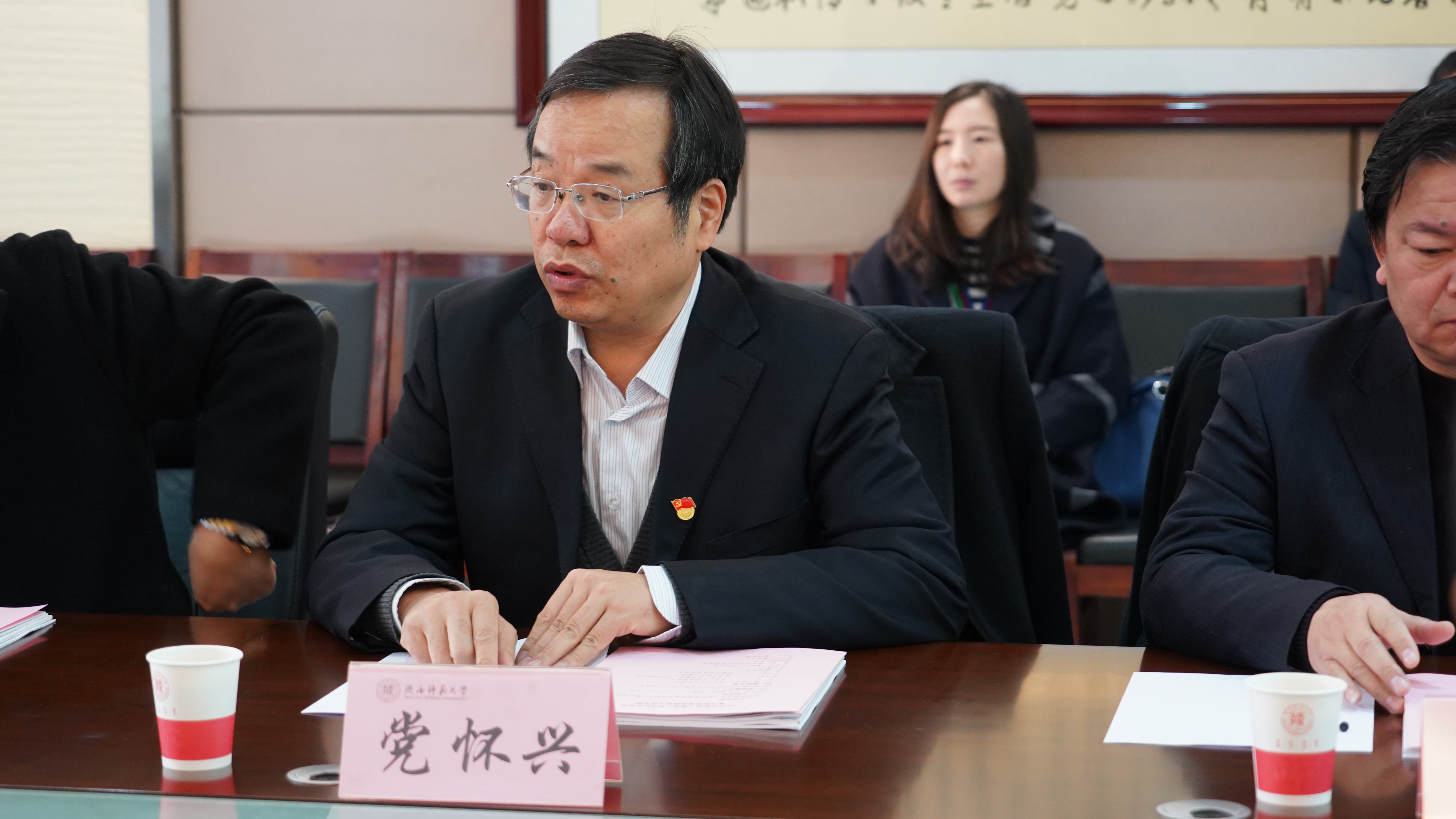 党怀兴副董事长首先对专家组莅临公司验收指导工作表示感谢,向专家组简要介绍了公司语言资源开发研究中心和语言学学科的发展概况。中心主任邢向东教授从组织机构和研究队伍建设、科学研究、人才培养、学术交流、社会服务、问题及规划等六大方面向专家组详细汇报了基地的建设情况。随后,专家组现场考察了中心的办公室、图书资料室、语言科学实验室、多媒体报告厅等硬件设施,查阅了中心研究人员的各类论文、著作、教材等科研成果和获奖证书。其后,专家组从多个方面就中心的建设情况进行了质询,提出了意见和建议。