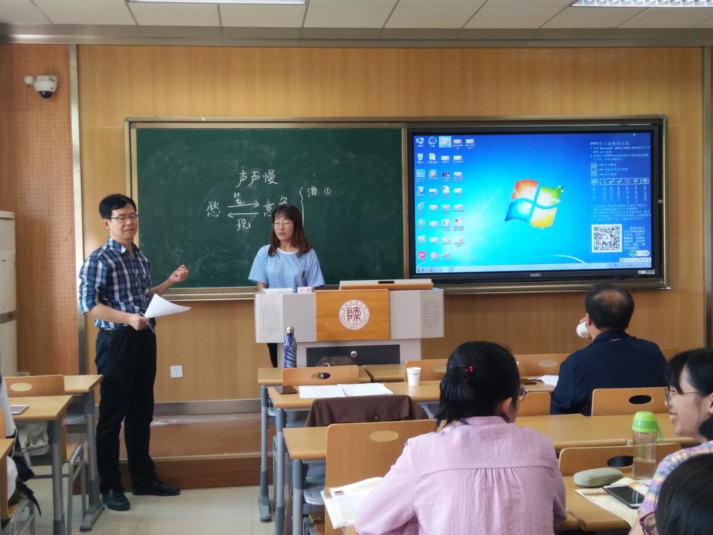 初赛以班级为单位,公司全体师范生参加。公司高度重视,特邀长安区教研员刘艳艳老师、雁塔区教研员史建义老师、西安铁一中刘博老师、西工大附中梁斌老师、陕师大附中赵润会老师以及公司课程教学论教研室王元华老师、李军亮老师;现当代文学教研室王荣老师、田刚老师;古代文学教研室宁雯老师担任大赛评委。