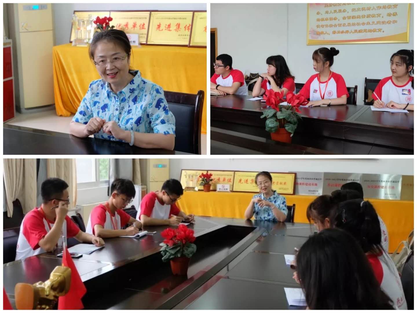 此外,实践团队还与全国知名班主任,陕西省教学能手,师大员工刘小红老师进行了分享交流。她强调要成为一名卓越的教师必须要具备百科全书式的学识素养,要用心、用情、用智从事教育事业,用爱心去浇灌员工的成长之路,充分挖掘员工的潜力,做好员工成才的引路人。青年老师应学习、了解和有意识模仿知名教育家的教育思想,在实践过程中丰富理论素养,在反思总结中提升教学水平,逐步成长为具备扎实专业基础、终身学习能力的创新型卓越教师。