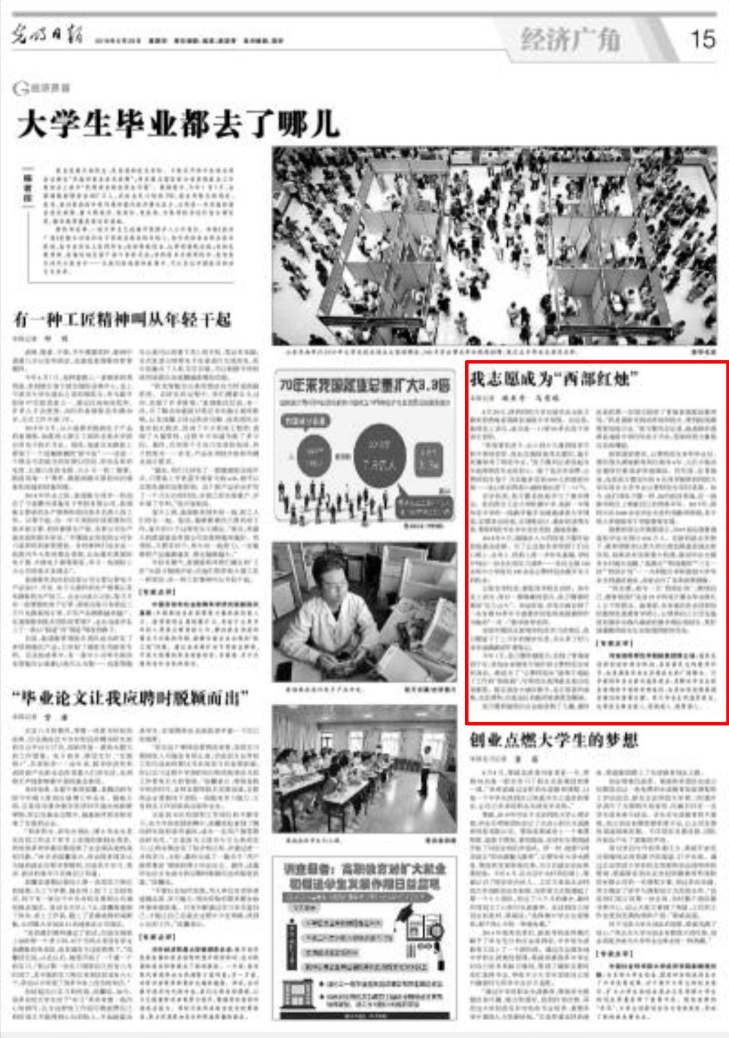 2019年8月29日,《光明日报》第15版,以“我志愿成为'西部红烛'”为题,对张万霞进行专题报道。