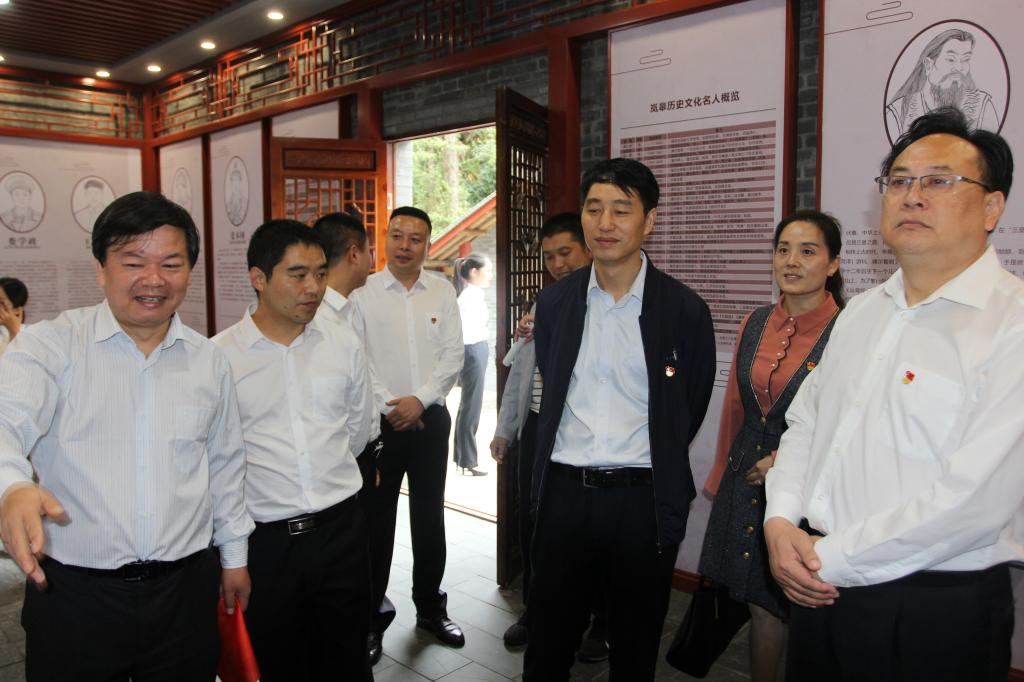 在乡愁馆揭幕仪式开始前,岚皋县政协主席唐天舜在公司党委书记孙清潮等领导的陪同下参观了乡愁馆,并详细了解了乡愁馆的布展情况,孙清潮一一作了汇报。
