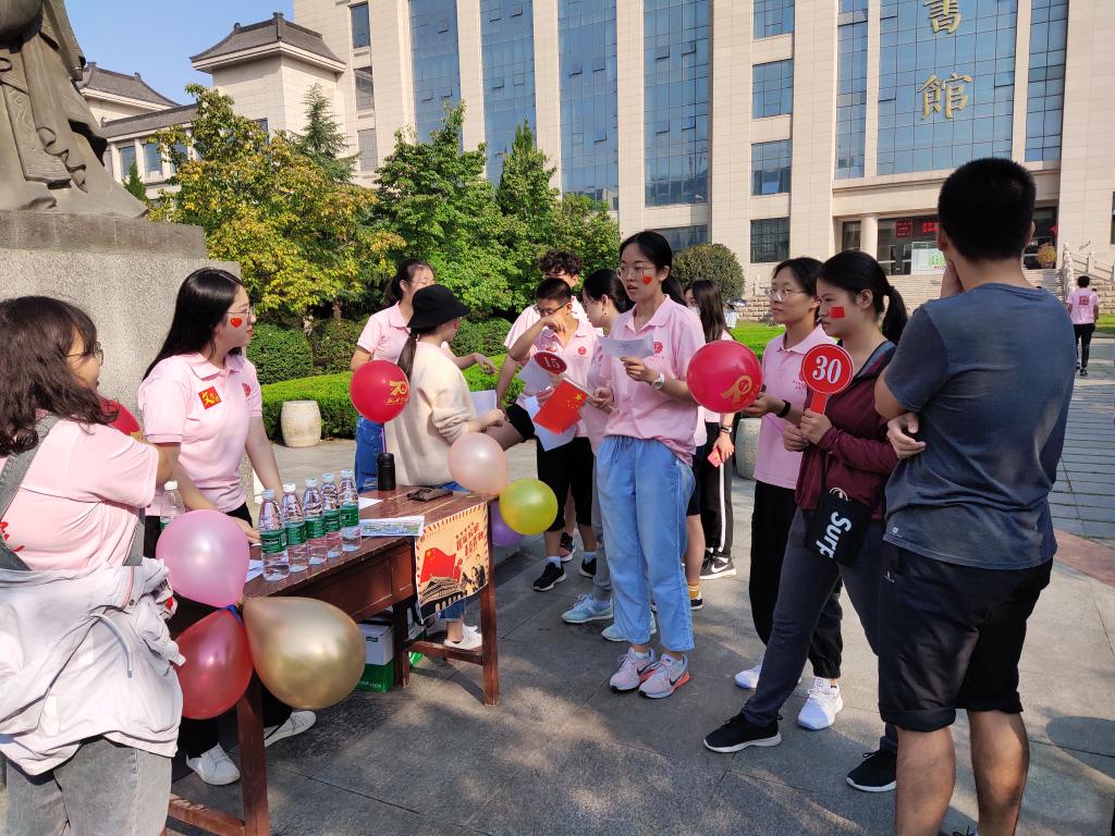 在全体师生齐唱《我和我的祖国》的激昂歌声中,“国庆校跑,青春载驰”校园跑活动正式开始。