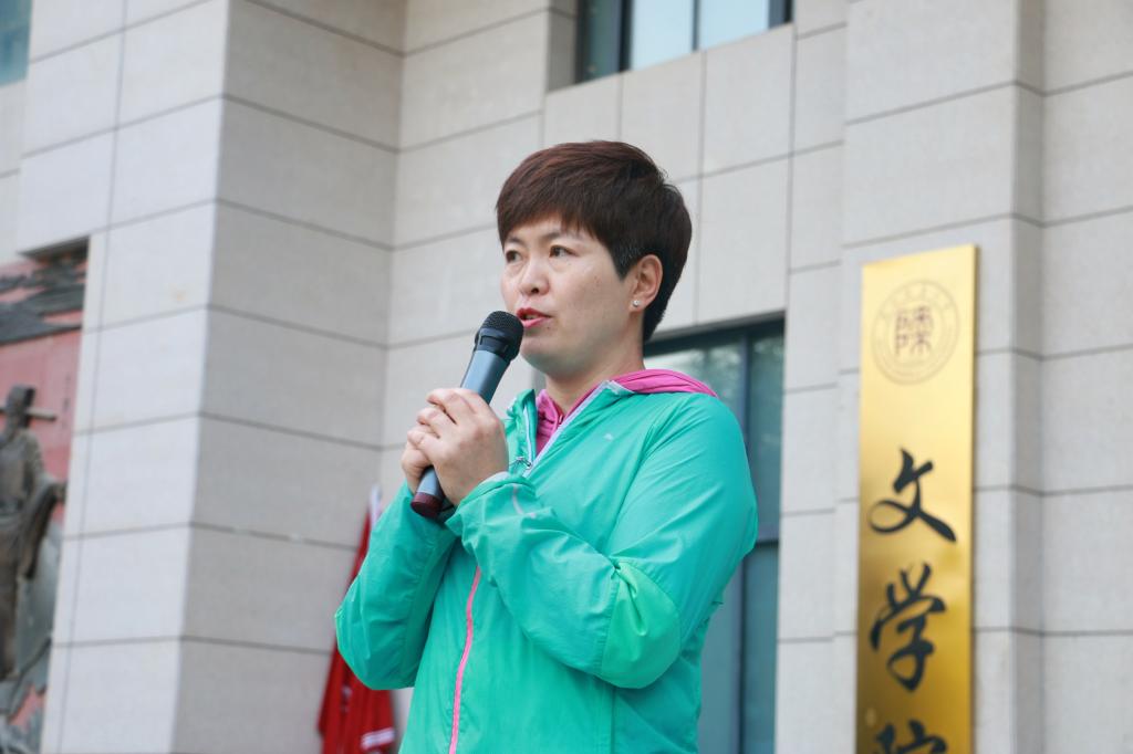 李斐老师致开幕词。她表示,同学们手中鲜艳的五星红旗承载着文苑学子表白祖国的热情,飘扬着青年一代报效祖国的赤心,希望大家跑出风采、动出乐趣,彰显公司的青春活力,礼赞新中国七十华诞。