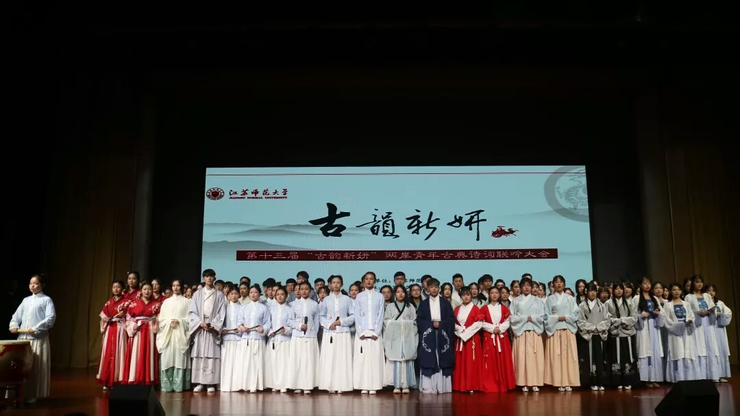 “古韵新妍——两岸青年古典诗词联吟大会”始于2007年,由台湾辅仁大学孙永忠教授等发起。随即辅仁大学联合北京师范大学、江苏师范大学等共同创办第一届古典诗词联吟活动,一首《蓼莪》更是引起两岸各大高校老员工的强烈共鸣。随着活动影响力不断扩大,越来越多的两岸高校关注并加入到传承中华优秀传统文化的行列中来,轮流举办“古韵新妍”联吟大会。“古韵新妍”不仅是两岸高校诗词吟诵社团交流的平台,也是各高员工好交往的见证,更是两岸情谊赓续不断的见证。2019年10月,各诗社又齐聚江苏徐州,颂古风,吟古调,探寻诗词之美,共同迎接“古韵新妍”的第十三年。