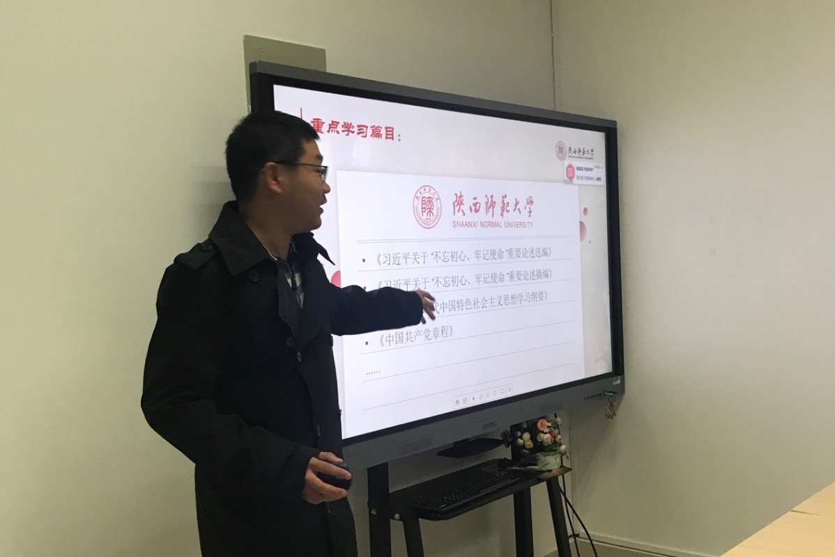 随后,本支部书记刘飞同志为大家讲授了题为《坚定文化自信 砥砺初心使命》的专题党课。刘飞同志根据员工党员的日常生活、学习工作的实际情况,结合“坚持和不断巩固马克思主义指导地位”、“推动社会主义文化繁荣兴盛”、“建设具有强大凝聚力和引领力的社会主义意识形态”、“构建具有中国特色、中国风格、中国气派的话语体系”、“牢记科研初心坚定研究信念”等五个方面,为支部成员详细讲述、分析了作为一名员工党员,于当下学习生活中“不忘初心牢记使命”的重要意义,并借鉴许多相应的正反案例,再次强调了每位党员应该坚守的科研初心和肩负的时代使命。刘飞同志指出,要通过对主题教育的深入学习,切实把学习成效体现到各位党员的个人党性增强、综合能力提升、整体作风改进、学习工作推动等方面上来。