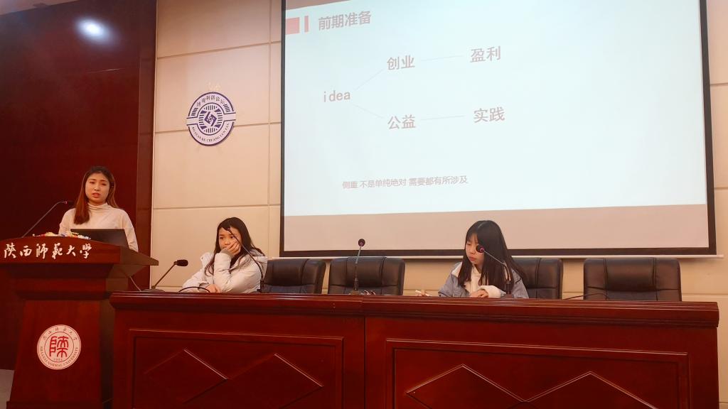 论坛过程中,施苾芸、冉自洁两位同学从参赛经历出发,与现场的同学们分享了参赛作品类型、前期准备、计划书写作、ppt制作等方面的经验,让同学们对此类比赛有了深入的了解,解决了同学们在参赛过程中遇到的问题。