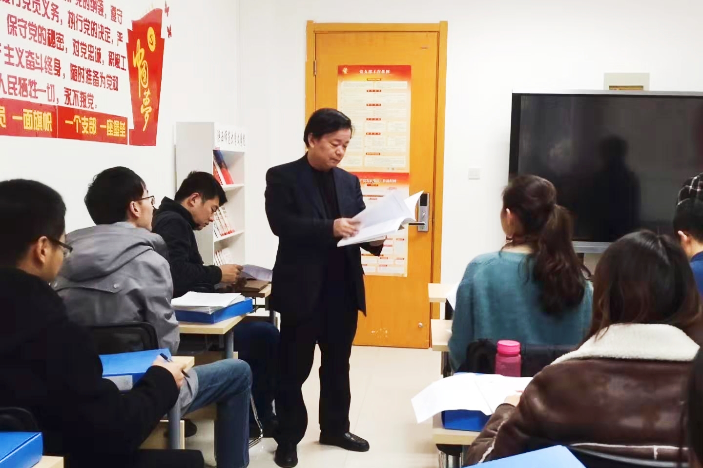 会上,党委书记孙清潮结合相关文件,要求各党支部要深入学习贯彻习近平新时代中国特色社会主义思想,认真开展好“不忘初心、牢记使命”主题教育专题组织生活会和民主评议党员工作,并就加强自媒体平台管理、社团活动、冬季宿舍安全的问题做了强调。 党委副书记李斐进一步强调了孙书记的要求,并对主题教育专题组织生活会和民主评议党员等相关安排进行了细化,还组织安排党员进行了学习交流。