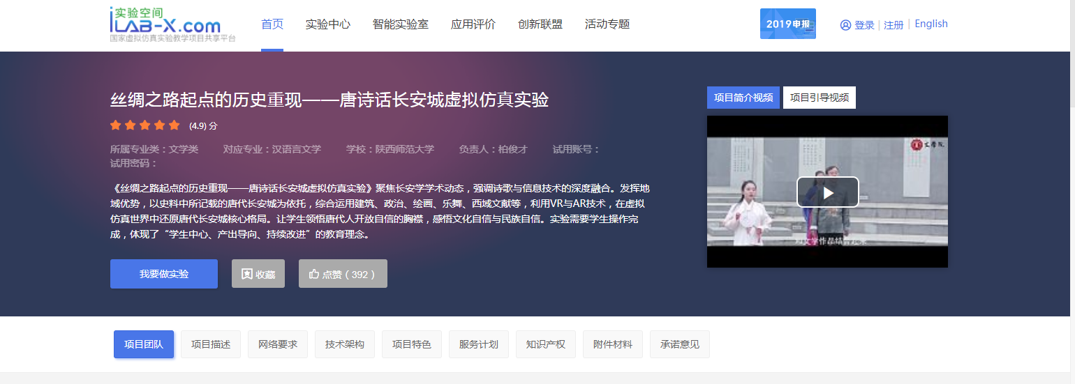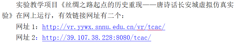 在公司领导和公司领导的大力支持下,中国古代文学专业与网络与实验中心共同携手,以GIS地理信息系统为基础环境,通过诸多专题标引与内容拓展,形成文学文本与文学环境的立体融合,辅以VR与AR技术,使员工参与虚拟要素的制作、触发与勾连,建成“丝绸之路起点的历史重现——唐诗话长安城虚拟仿真实验”系统,并于2019年10月获批为省级虚拟仿真实验教学项目,并获得参加国家虚拟仿真实验教学项目的评选资格,目前2019年国家虚拟仿真实验教学项目正在评审过程中。