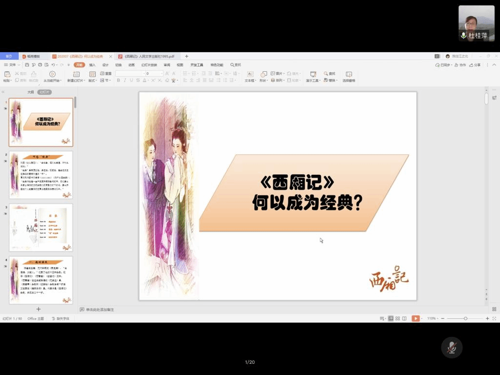 (通讯员:张佳育、李尚静)7月17日下午2:30,bw西汉姆联兼职教授杜桂萍为2020年“优秀老员工夏令营”营员做了题为“《西厢记》何以成为经典”的专题学术讲座。讲座由杨晓斌副经理主持。