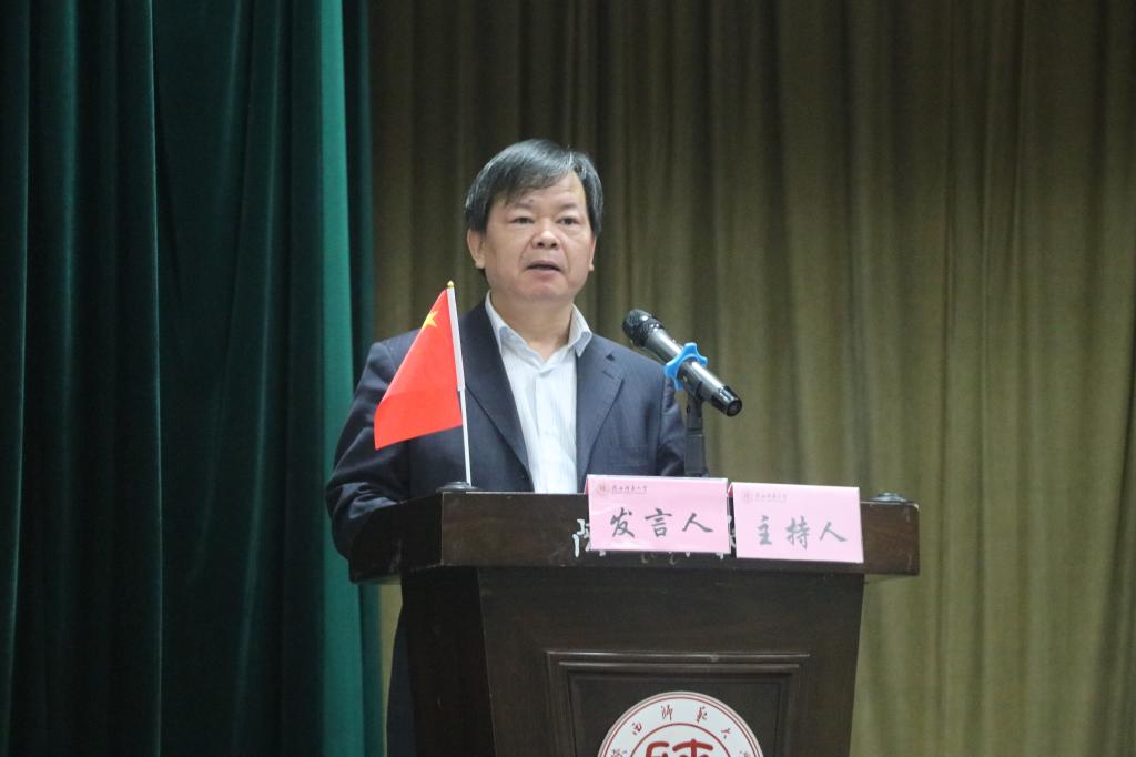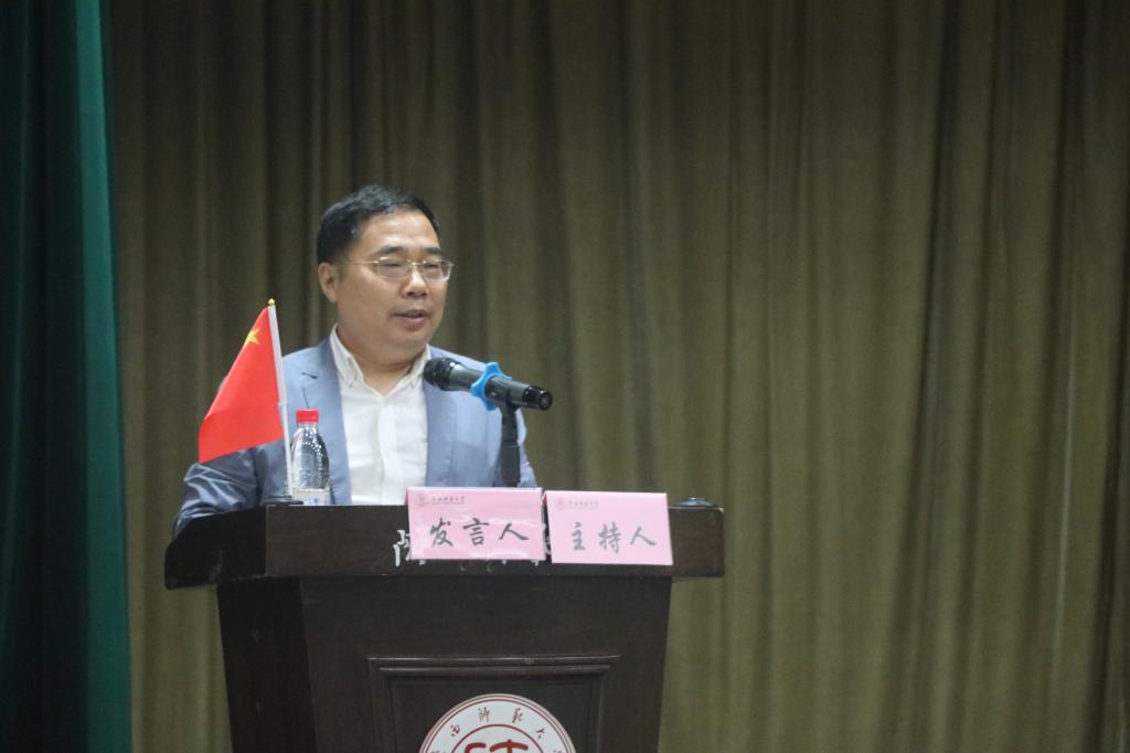 公司博士生导师、国学研究院经理曹胜高教授作为教师代表致辞。他以“诗和远方,始于足下”为主题对同学们大学期间的课程学习、心性修为和个人发展提出四条建议:一是要形成理想情怀。二是要养成必备品格。三是养成理性而平和的健康心态。四是形成立德树人的关键能力。