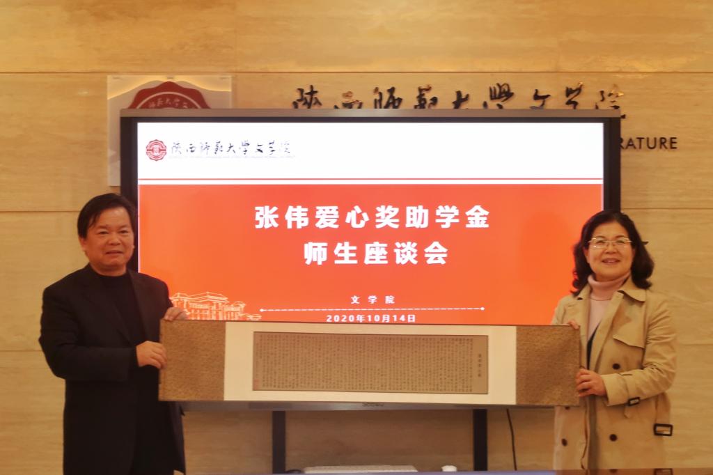 其间,获奖受助员工和公司分别向张伟老师赠送了由员工亲手书写的书法作品和《陕西师大赋》,表达了诚挚谢意和祝福。会后,张伟在相关老师的陪同下参观了公司。