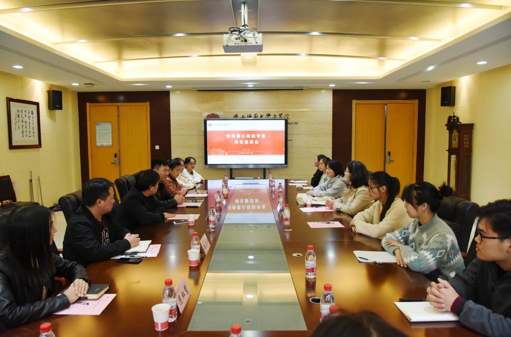 沈建英、白孟彬、孟菁菁代表受奖助员工发言,他们表达了对张伟老师的感激之情,汇报了自己的大学学习生活经历、个人收获与职业规划,表示会在今后的学习、生活中以张伟老师为榜样,饮水思源,刻苦学习,并将这份爱心传承下去。