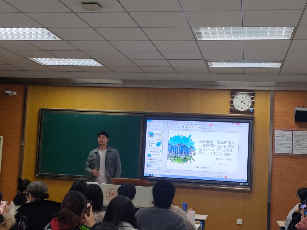 2020年11月20日,第180场博士学术报告以《陕北民间文化在路遥作品中的艺术呈现》为题,由中国现当代文学专业博士研究生邱跃强主讲。邱跃强博士指出陕北民间文化在抗日战争期间的解放区得到了发掘和整理,在1942年《讲话》之后,逐渐由民间走向官方、由边缘走向中心。作为土生土长的陕北人,路遥的民间性流淌在他的血液里、渗透在他的骨子里,更呈现在《平凡的世界》《人生》等作品中。报告通过细致的文本分析得出结论,科学严谨。
