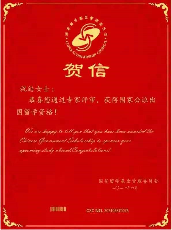 (通讯员:文苑)2021年6月30日,国家留学基金管理委员会发来贺信,公司2018级比较文学硕士研究生祝皓荣获国家公派出国留学资格,前往比利时世界顶尖研究型大学——根特大学(Ghent University)攻读博士学位。祝皓同学在学期间踏实刻苦,努力进取,今年6月,在导师李永平教授的悉心指导下,顺利完成毕业论文 “《佳人奇遇记》的翻译与‘亚洲主义’话语的建构”,获得硕士学位。