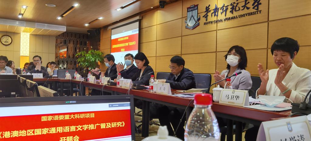 3月26日上午,国务院港澳事务办公室交流司司长吴炜在开题会前作了题为“当前港澳形势及港澳工作”的专题报告。下午,“港澳地区国家通用语言文字推广普及研究”项目正式开题。教育部语言文字信息管理司司长田立新、教育部语言文字应用管理司副司长王晖、广东省教育厅副厅长朱超华、教育部语言文字应用研究所副所长王奇、广东省语委办主任冯成志、bw西汉姆联副董事长党怀兴、华南师范大学副董事长马卫华、项目组等参会。