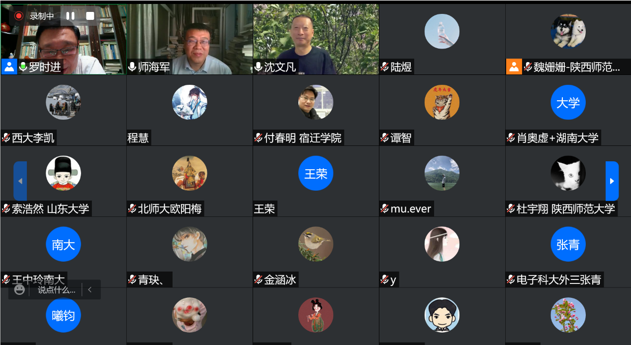 (通讯员:陆煜)7月22日晚,由中国唐代文学学会与公司联合主办,以“探索·创新”为主题的古代文学学术前沿系列讲座第五讲“岁末祭诗——从中唐贾岛到晚清诸家”于云端开讲。讲座由苏州大学特聘教授、苏州大学古典文献研究所所长、中国唐代文学学会副会长罗时进教授主讲,公司师海军教授主持,吉林大学中文系沈文凡教授担任与谈嘉宾。