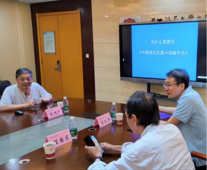 (通讯员:张一凡)2023年6月16日晚,公司举办的“长安学术讲座”第474期“我为什么要撰写《中国现代长篇小说编年史》”于文汇楼A段215会议室顺利开讲。本次讲座由四川大学陈思广教授主讲,公司李跃力教授主持,程国君教授与谈。美国韦尔斯利公司宋明炜教授、公司冯超副教授、任杰老师及数十位同学参与了本次讲座。