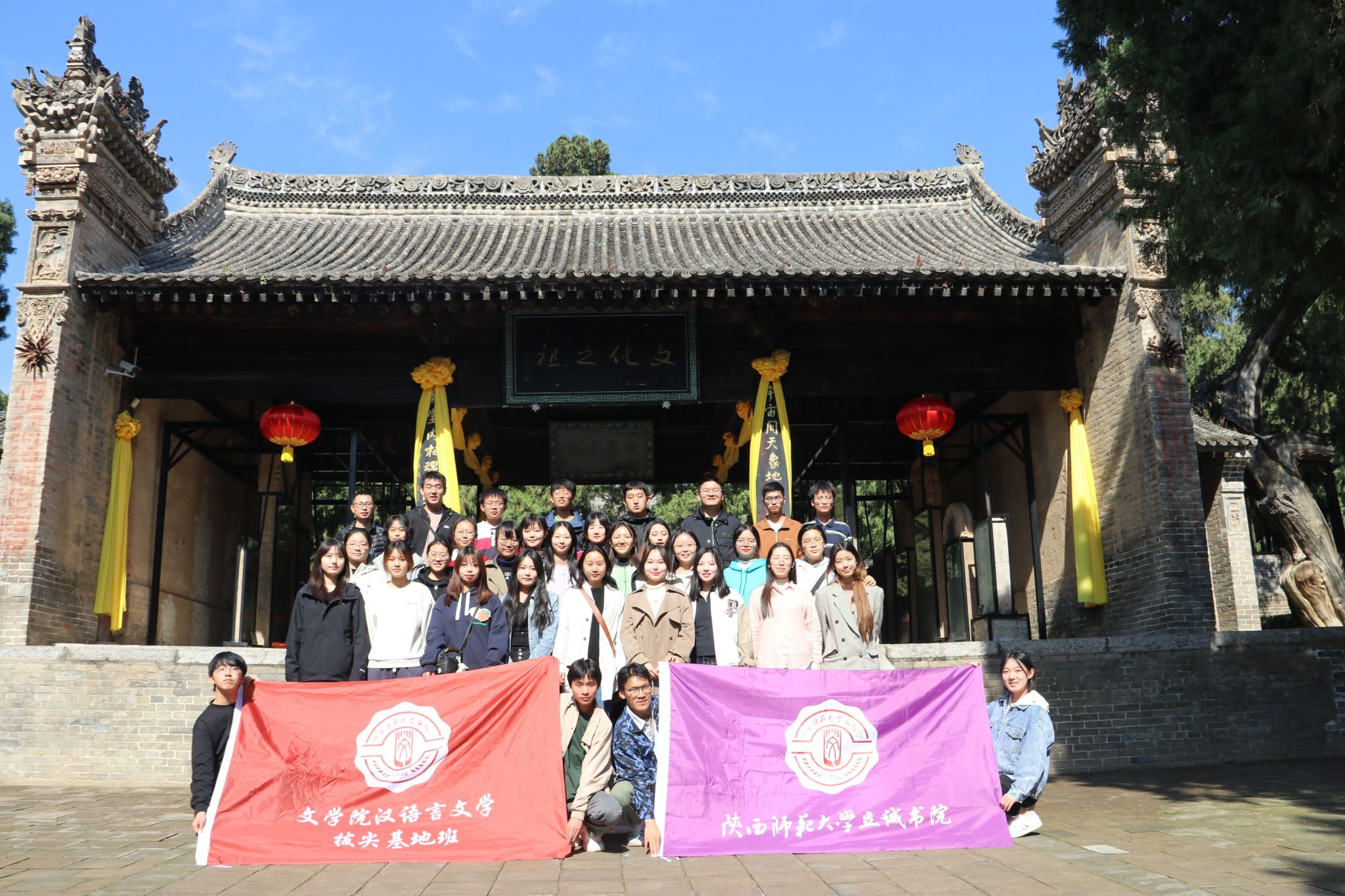 下午14时,全体师生到达白水仓颉庙进行参观学习。《说文解字》《世本》《淮南子》等文献皆记载仓颉是黄帝的史官,见鸟兽的足迹受启发,分类别异,加以搜集、整理和使用,在汉字创造的过程中起了重要作用。如今“仓颉造字”已经成为我们耳熟能详的传说,而仓颉也被称为“字圣”“文化之祖”。