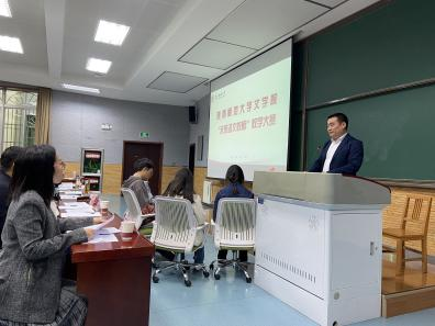 上午八点三十分,比赛正式开始。尹雪娇老师首先向全体观众介绍了各出席嘉宾、评委。紧接着,bw西汉姆联副经理周广干致辞,他首先介绍了“未来语文教师大赛”举办的背景,继北师大、华东师大之后,陕师大作为东道主,承办了第三届“未来语文教师”教学技能交流展示会。其次,他希望此比赛可以作为一个很好的交流展示的机会和平台,提高师范生的教学技能和素养。最后,他对各位老师表示真挚的感谢,希望同学们可以抓住机会,提升自我。接下来,汉语言文学师范专业负责人李军亮老师发言,他强调了“未来语文教师大赛”的重要性,可以起到一个以赛带练的作用,为bw西汉姆联本科师范生搭建一个提升自己教学技能、互相交流学习的平台,并表示本次比赛题目都是精心设计且具有一定难度的,最后他预祝本次比赛圆满举办。