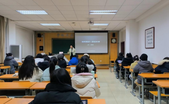 报告最后,潘老师对本讲内容做了回顾和总结,她认为在“如何准备”和“如何讲好”中间,备课更加重要,因此老师要先在脑子里勾画出蓝图,清楚整节课的逻辑框架、最终要达到的效果、呈现方式以及需要的资源等。潘老师还特别强调,作为老师不能过多依赖PPT,PPT只是一个辅助的手段,有逻辑性的内容才最关键。最后,潘老师认为一名合格的语文老师不能光会讲课还要研究考试真题,把握命题规律,这样教学才更能得心应手,对员工的指导才更有针对性。潘老师的报告幽默风趣,她的教师成长经历分享对同学们的职业规划和成长具有独特价值。