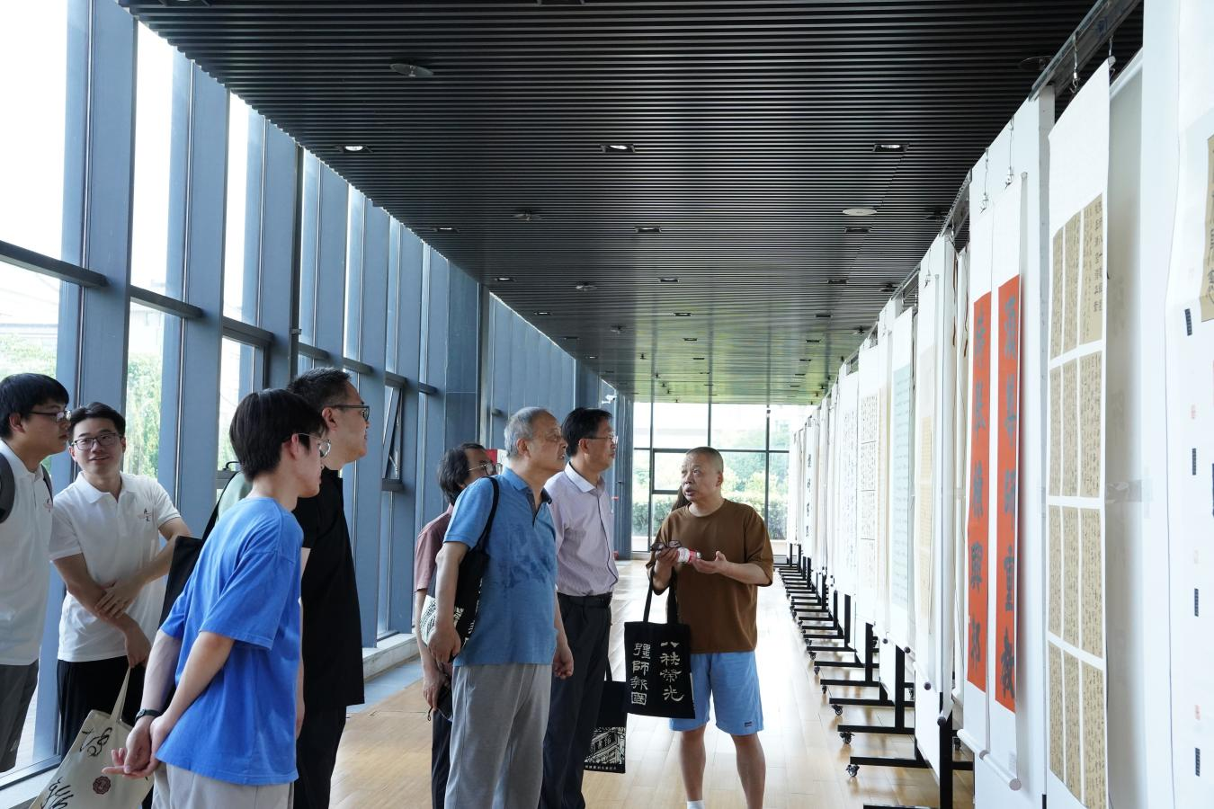 开幕式结束后,师生移步教育博物馆三楼共同参观书画展。出席活动的书画家现场挥毫交流,为同学们答疑解惑。展览现场还为大家准备了各种精美小礼品与体验活动。