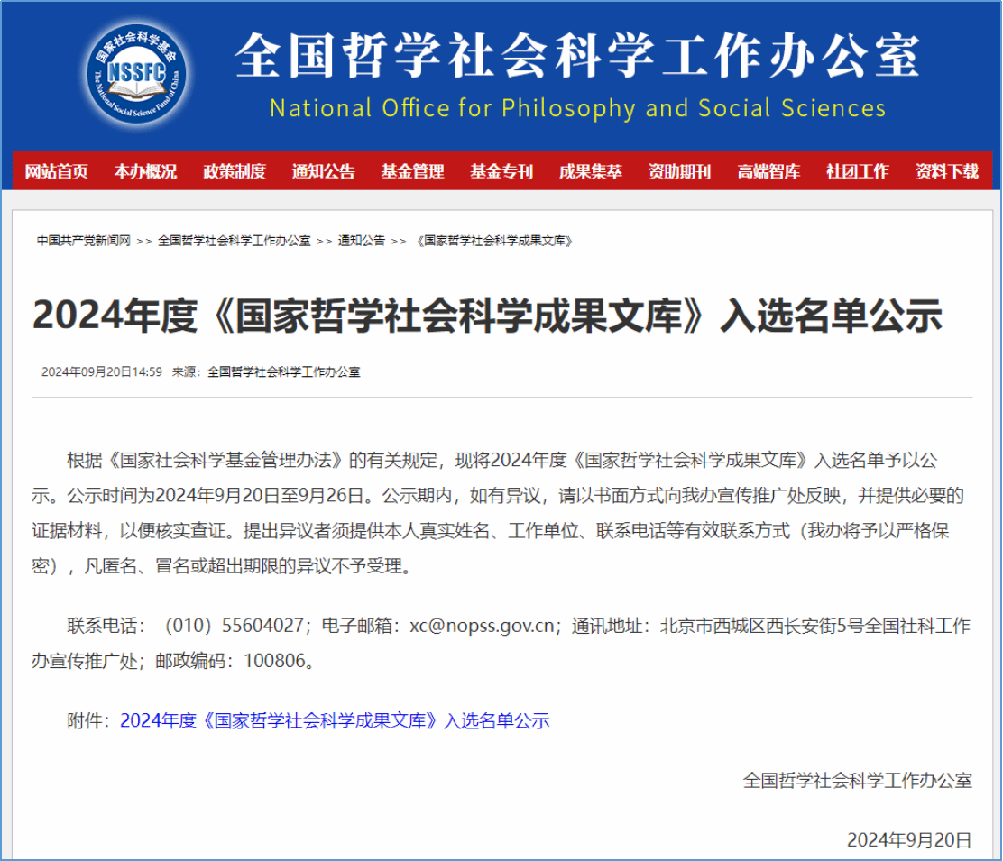 9月20日,全国哲学社会科学工作办公室公示了2024年度《国家哲学社会科学成果文库》入选名单,共有61部成果进入名单。公司李继凯教授的成果《陕甘宁文艺通论》入选。